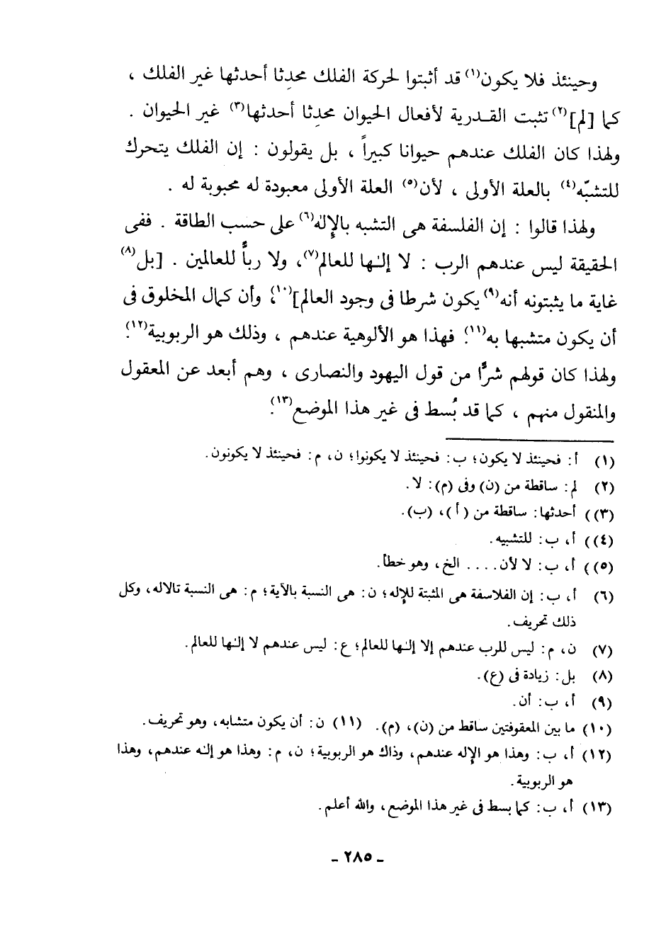 (¬6) أ، ب: إِنَّ الْفَلَاسِفَةَ هِيَ الْمُثْبِتَةُ لِلْإِلَهِ، ن: هِيَ النِّسْبَةُ بِالْآيَةِ، م: هِيَ النِّسْبَةُ تَالَالَهُ، وَكُلُّ ذَلِكَ تَحْرِيفٌ.