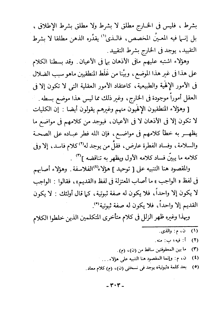 (¬5) بَعْدَ كَلِمَةِ " ثُبُوتِيَّةٌ " يُوجَدُ فِي نُسْخَتَيْ (ن) ، (م) كَلَامٌ مُعَادٌ.