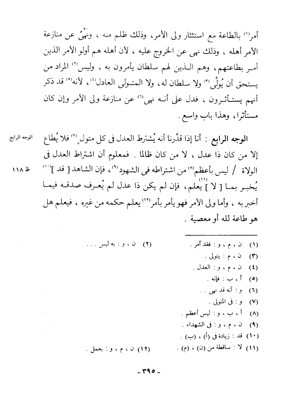 الْوَجْهُ الرَّابِعُ: أَنَّا إِذَا قَدَّرْنَا أَنَّهُ يُشْتَرَطُ الْعَدْلُ فِي كُلِّ مُتَوَلٍّ (¬7) فَلَا يُطَاعُ إِلَّا مَنْ كَانَ ذَا عَدْلٍ، لَا مَنْ كَانَ ظَالِمًا. فَمَعْلُومٌ أَنَّ اشْتِرَاطَ الْعَدْلِ فِي الْوُلَاةِ لَيْسَ بِأَعْظَمَ (¬8) مِنِ اشْتِرَاطِهِ فِي الشُّهُودِ (¬9) فَإِنَّ الشَّاهِدَ قَدْ (¬10) يُخْبِرُ بِمَا لَا (¬11) يَعْلَمُ، فَإِنْ لَمْ يَكُنْ ذَا عَدْلٍ لَمْ يُعْرَفْ صِدْقُهُ فِيمَا أَخْبَرَ بِهِ، وَأَمَّا وَلِيُّ الْأَمْرِ فَهُوَ يَأْمُرُ بِأَمْرٍ (¬12) يَعْلَمُ حُكْمَهُ مِنْ غَيْرِهِ، فَيَعْلَمُ هَلْ هُوَ طَاعَةٌ لِلَّهِ أَوْ مَعْصِيَةٌ.