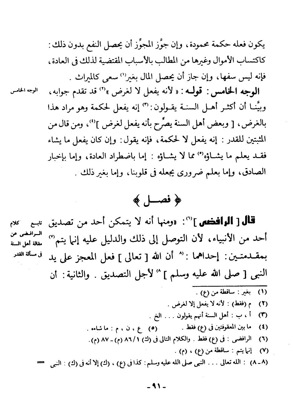 (¬8) اللَّهَ تَعَالَى. . . . . . . . النَّبِيِّ صَلَّى اللَّهُ عَلَيْهِ وَسَلَّمَ: كَذَا فِي (ع) ، (ك) إِلَّا أَنَّهُ فِي (ك) : النَّبِيِّ عَلَيْهِ السَّلَامُ، وَفِي (ن) : أَنَّ اللَّهَ فَعَلَ الْمُعْجِزَةَ عَلَى يَدِ النَّبِيِّ، م، أ، ب: أَنَّ اللَّهَ فَعَلَ الْمُعْجِزَةَ عَلَى يَدِ النَّبِيِّ.