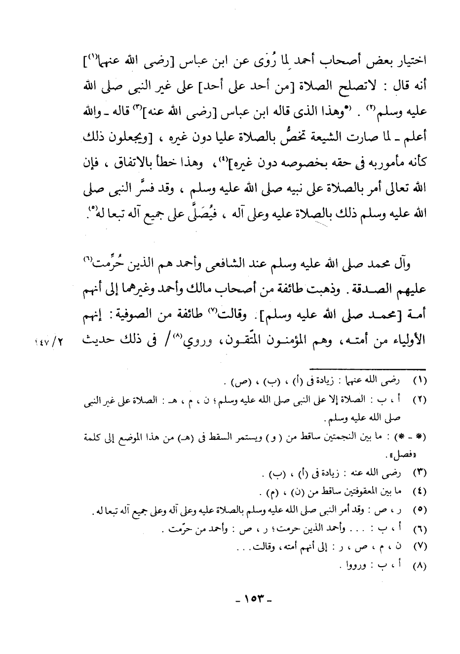 (¬2) أ، ب: الصَّلَاةُ إِلَّا عَلَى النَّبِيِّ - صَلَّى اللَّهُ عَلَيْهِ وَسَلَّمَ -، ن، م، هـ: الصَّلَاةُ عَلَى غَيْرِ النَّبِيِّ - صَلَّى اللَّهُ عَلَيْهِ وَسَلَّمَ -.
