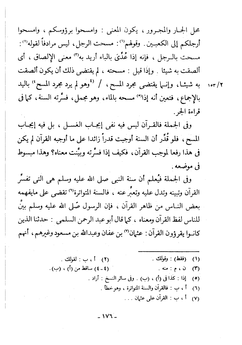 وَفِي الْجُمْلَةِ فَالْقُرْآنُ لَيْسَ فِيهِ نَفْيُ إِيجَابِ الْغَسْلِ، بَلْ فِيهِ إِيجَابُ الْمَسْحِ، فَلَوْ قُدِّرَ أَنَّ السُّنَّةَ أَوْجَبَتْ قَدْرًا زَائِدًا عَلَى مَا أَوْجَبَهُ الْقُرْآنُ لَمْ يَكُنْ فِي هَذَا رَفْعًا لِمُوجِبِ الْقُرْآنِ، فَكَيْفَ إِذَا فَسَّرَتْهُ وَبَيَّنَتْ مَعْنَاهُ؟ وَهَذَا مَبْسُوطٌ فِي مَوْضِعِهِ.