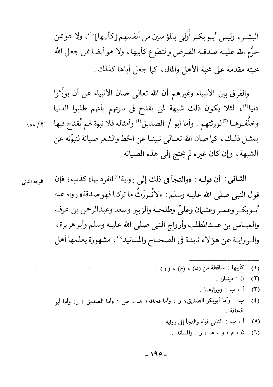 الثَّانِي: أَنَّ قَوْلَهُ: " وَالْتَجَأَ فِي ذَلِكَ إِلَى رِوَايَةٍ (¬5) انْفَرَدَ بِهَا " كَذِبٌ؛ فَإِنَّ قَوْلَ النَّبِيِّ - صَلَّى اللَّهُ عَلَيْهِ وَسَلَّمَ -: " لَا نُورَثُ مَا تَرَكَنَا فَهُوَ صَدَقَةٌ " رَوَاهُ عَنْهُ أَبُو بَكْرٍ وَعُمَرُ وَعُثْمَانُ وَعَلِيٌّ وَطَلْحَةُ وَالزُّبَيْرُ وَسَعْدٌ وَعَبْدُ الرَّحْمَنِ بْنُ عَوْفٍ وَالْعَبَّاسُ بْنُ عَبْدِ الْمُطَّلِبِ وَأَزْوَاجُ النَّبِيِّ - صَلَّى اللَّهُ عَلَيْهِ وَسَلَّمَ - وَأَبُو هُرَيْرَةَ، وَالرِّوَايَةُ عَنْ هَؤُلَاءِ ثَابِتَةٌ فِي الصِّحَاحِ وَالْمَسَانِيدِ (¬6) ، مَشْهُورَةٌ يَعْلَمُهَا أَهْلُ
