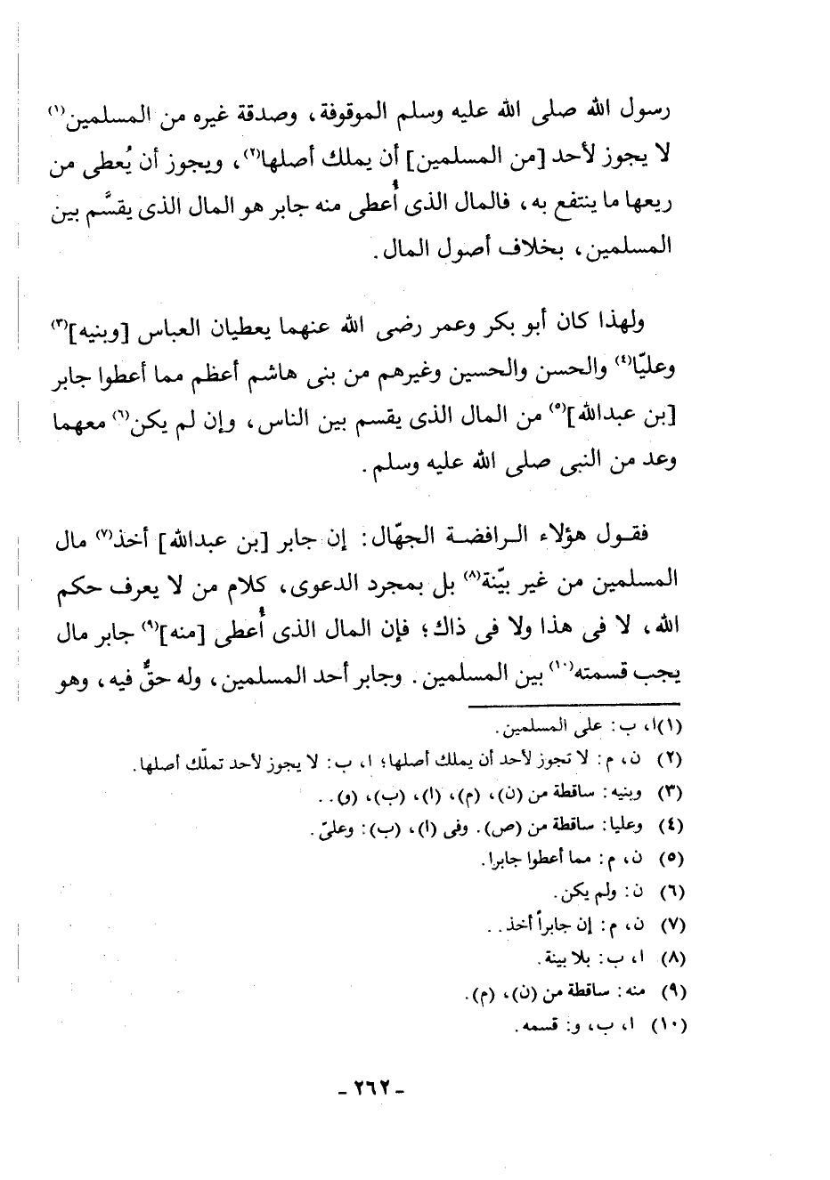 فَقَوْلُ هَؤُلَاءِ الرَّافِضَةِ الْجُهَّالِ: إِنَّ جَابِرَ [بْنَ عَبْدِ اللَّهِ] أَخَذَ (¬7) مَالَ الْمُسْلِمِينَ مِنْ غَيْرِ بَيِّنَةٍ (¬8) بَلْ بِمُجَرَّدِ الدَّعْوَى، كَلَامُ مَنْ لَا يَعْرِفُ حُكْمَ اللَّهِ، لَا فِي هَذَا وَلَا فِي ذَاكَ، فَإِنَّ الْمَالَ الَّذِي أُعْطِيَ [مِنْهُ] (¬9) جَابِرٌ مَالٌ يَجِبُ قِسْمَتَهُ (¬10) بَيْنَ الْمُسْلِمِينَ. وَجَابِرٌ أَحَدُ الْمُسْلِمِينَ، وَلَهُ حَقٌّ فِيهِ، وَهُوَ