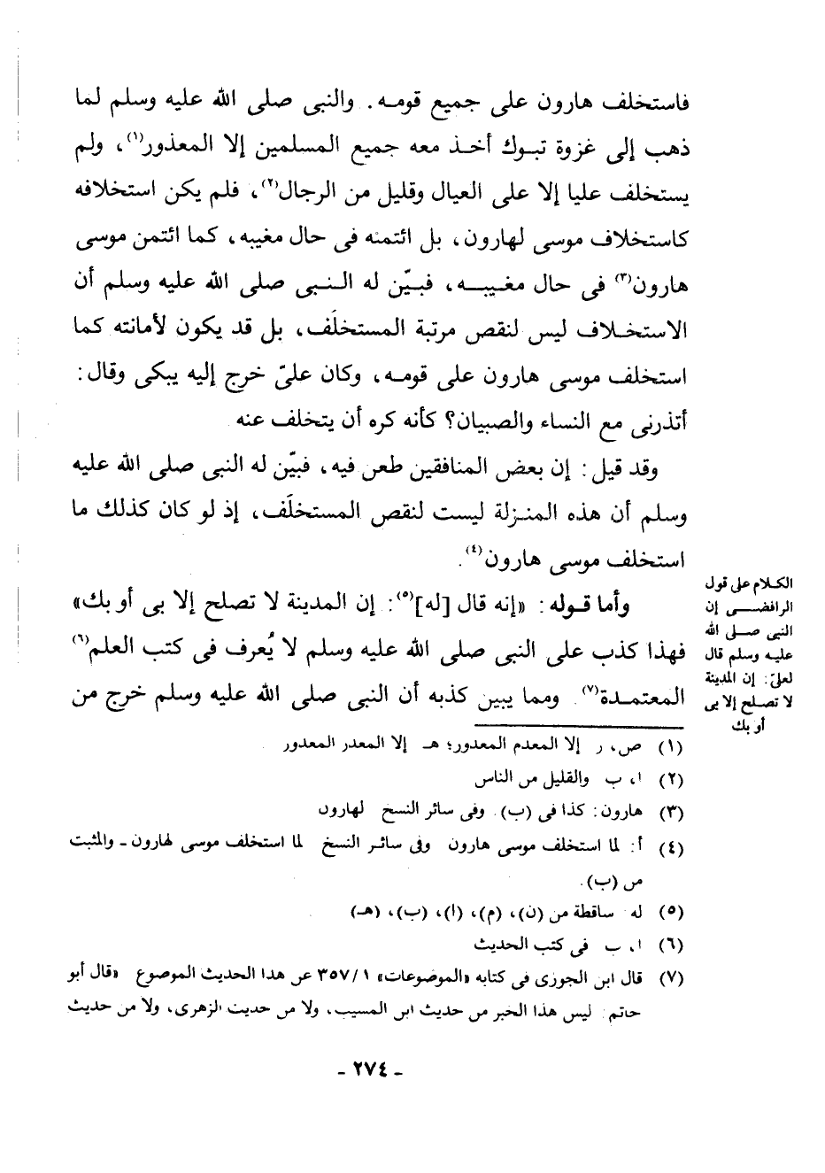 (¬4) أ: لَمَا اسْتَخْلَفَ مُوسَى هَارُونَ. وَفِي سَائِرِ النُّسَخِ: لَمَا اسْتَخْلَفَ مُوسَى لِهَارُونَ، وَالْمُثْبَتُ مِنْ (ب) .