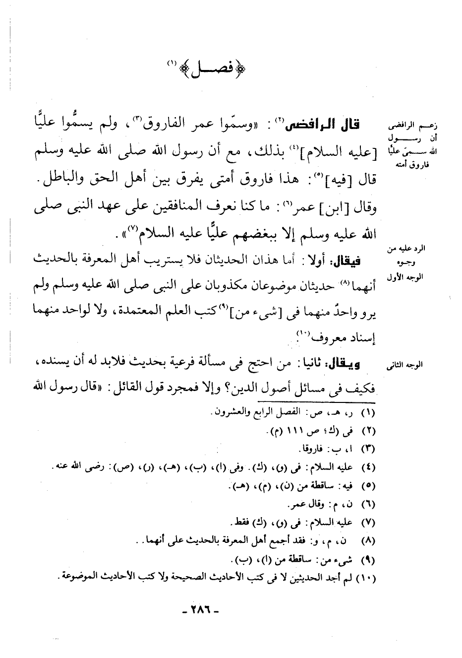 قَالَ الرَّافِضِيُّ فِي (¬1) : " وَسَمَّوْا عُمَرَ الْفَارُوقَ (¬2) ، وَلَمْ يُسَمُّوا عَلِيًّا [عَلَيْهِ السَّلَامُ] عَلَيْهِ السَّلَامُ: (¬3) بِذَلِكَ، مَعَ أَنَّ رَسُولَ اللَّهِ - صَلَّى اللَّهُ عَلَيْهِ وَسَلَّمَ - قَالَ [فِيهِ] (¬4) : «هَذَا فَارُوقُ أُمَّتِي يَفْرُقُ بَيْنَ أَهْلِ الْحَقِّ وَالْبَاطِلِ.» وَقَالَ [ابْنُ] عُمَرَ (¬5) : مَا كُنَّا نَعْرِفُ الْمُنَافِقِينَ عَلَى عَهْدِ النَّبِيِّ - صَلَّى اللَّهُ عَلَيْهِ وَسَلَّمَ - إِلَّا بِبُغْضِهِمْ عَلِيًّا - عَلَيْهِ السَّلَامُ - (¬6) ".