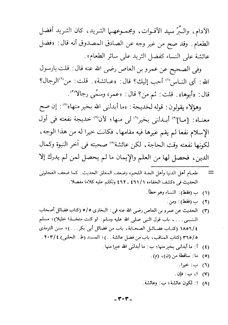 (¬3) الْحَدِيثُ عَنْ عَمْرِو بْنِ الْعَاصِ - رَضِيَ اللَّهُ عَنْهُ - فِي: الْبُخَارِيِّ 5/5 (كِتَابُ فَضَائِلِ أَصْحَابِ النَّبِيِّ. . .، بَابُ قَوْلِ النَّبِيِّ - صَلَّى اللَّهُ عَلَيْهِ وَسَلَّمَ -: لَوْ كُنْتُ مُتَّخِذًا خَلِيلًا) ; مُسْلِمٍ 4/1856 (كِتَابُ فَضَائِلِ الصَّحَابَةِ، بَابٌ مِنْ فَضَائِلِ أَبِي بَكْرٍ. . .) ; سُنَنِ التِّرْمِذِيِّ 5/365 (كِتَابُ الْمَنَاقِبِ، بَابٌ مِنْ فَضْلِ عَائِشَةَ. .) ; الْمُسْنَدِ (ط. الْحَلَبِيِّ) 4/203..