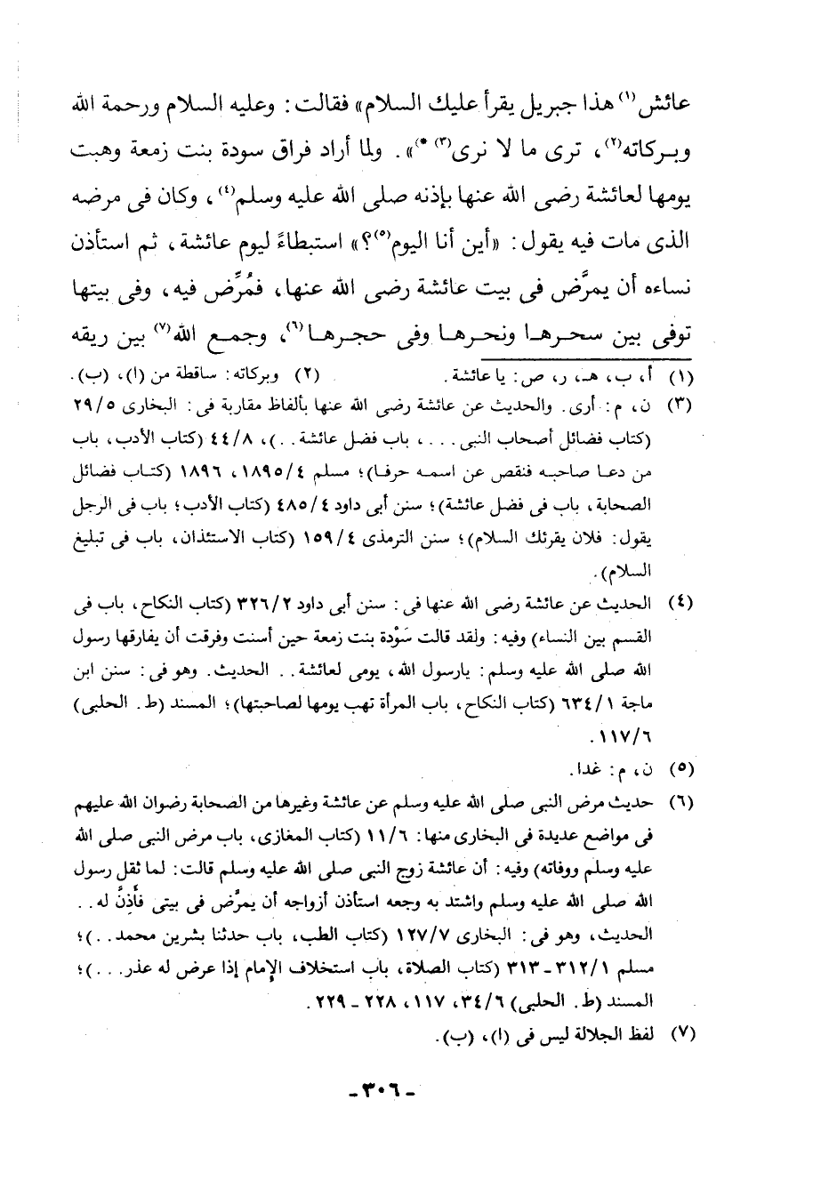 (¬4) ن، م: أَرَى. وَالْحَدِيثُ عَنْ عَائِشَةَ - رَضِيَ اللَّهُ عَنْهَا - بِأَلْفَاظٍ مُقَارِبَةٍ فِي: الْبُخَارِيِّ 5/29 (كِتَابُ فَضَائِلِ أَصْحَابِ النَّبِيِّ. . .، بَابُ فَضْلِ عَائِشَةَ. .) 8/44 (كِتَابُ الْأَدَبِ، بَابُ مَنْ دَعَا صَاحِبَهُ فَنَقَصَ عَنِ اسْمِهِ حَرْفًا) ; مُسْلِمٍ 4/1895 - 1896 (كِتَابُ فَضَائِلِ الصَّحَابَةِ، بَابٌ فِي فَضْلِ عَائِشَةَ) ; سُنَنِ أَبِي دَاوُدَ 4/485 (كِتَابُ الْأَدَبِ ; بَابٌ فِي الرَّجُلِ يَقُولُ: فُلَانٌ يُقْرِئُكَ السَّلَامَ) ; سُنَنِ التِّرْمِذِيِّ 4/159 (كِتَابُ الِاسْتِئْذَانِ، بَابٌ فِي تَبْلِيغِ السَّلَامِ) .