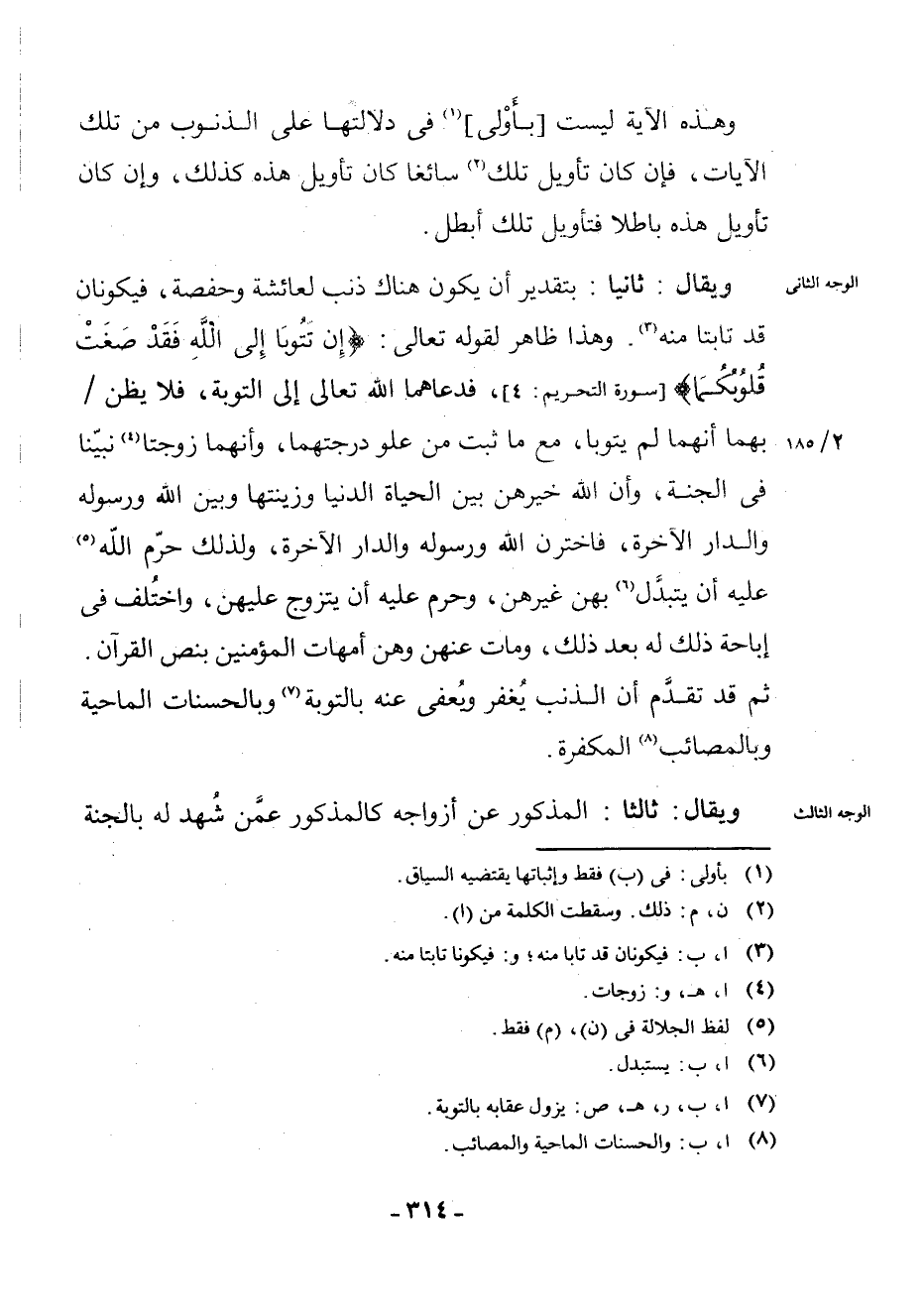 . وَهَذَا ظَاهِرٌ لِقَوْلِهِ تَعَالَى: {إِنْ تَتُوبَا إِلَى اللَّهِ فَقَدْ صَغَتْ قُلُوبُكُمَا} [سُورَةُ التَّحْرِيمِ: 4] فَدَعَاهُمَا اللَّهُ تَعَالَى إِلَى التَّوْبَةِ، فَلَا يُظَنُّ بِهِمَا أَنَّهُمَا لَمْ يَتُوبَا، مَعَ مَا ثَبَتَ مِنْ عُلُوِّ دَرَجَتِهِمَا، وَأَنَّهُمَا زَوْجَتَا (¬4)