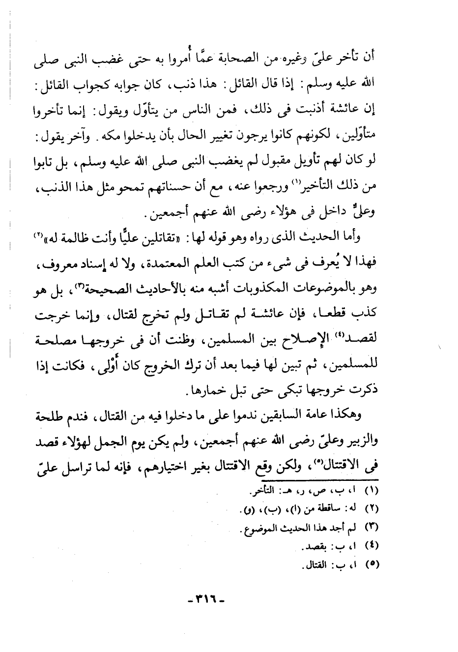 أَنَّ تَأَخُّرَ عَلِيٍّ وَغَيْرِهِ مِنَ الصَّحَابَةِ عَمَّا أُمِرُوا بِهِ حَتَّى غَضِبَ النَّبِيُّ - صَلَّى اللَّهُ عَلَيْهِ وَسَلَّمَ -: إِذَا قَالَ الْقَائِلُ: هَذَا ذَنْبٌ، كَانَ جَوَابُهُ كَجَوَابِ الْقَائِلِ: إِنَّ عَائِشَةَ أَذْنَبَتْ فِي ذَلِكَ، فَمِنَ النَّاسِ مَنْ يَتَأَوَّلُ وَيَقُولُ: إِنَّمَا تَأَخَّرُوا مُتَأَوِّلِينَ، لِكَوْنِهِمْ كَانُوا يَرْجُونَ تَغْيِيرَ الْحَالِ بِأَنْ يَدْخُلُوا مَكَّةَ: وَآخَرُ يَقُولُ: لَوْ كَانَ لَهُمْ تَأْوِيلٌ مَقْبُولٌ لَمْ يَغْضَبِ النَّبِيُّ - صَلَّى اللَّهُ عَلَيْهِ وَسَلَّمَ - بَلْ تَابُوا مِنْ ذَلِكَ التَّأْخِيرِ (¬1) وَرَجَعُوا عَنْهُ، مَعَ أَنَّ حَسَنَاتِهِمْ تَمْحُو مِثْلَ هَذَا الذَّنْبِ، وَعَلِيٌّ دَاخِلٌ فِي هَؤُلَاءِ - رَضِيَ اللَّهُ عَنْهُمْ - أَجْمَعِينَ.