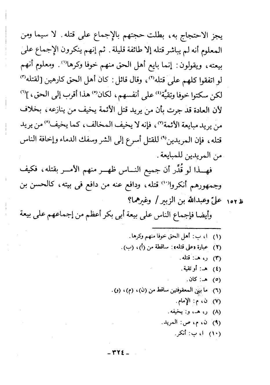 يَجُزُ الِاحْتِجَاجُ بِهِ، بَطَلَتْ حُجَّتُهُمْ بِالْإِجْمَاعِ عَلَى قَتْلِهِ. لَا سِيَّمَا وَمِنَ الْمَعْلُومِ أَنَّهُ لَمْ يُبَاشِرْ قَتْلَهُ إِلَّا طَائِفَةٌ قَلِيلَةٌ. ثُمَّ إِنَّهُمْ يُنْكِرُونَ الْإِجْمَاعَ عَلَى بَيْعَتِهِ، وَيَقُولُونَ: إِنَّمَا بَايَعَ أَهْلُ الْحَقِّ مِنْهُمْ خَوْفًا وَكُرْهًا (¬1)