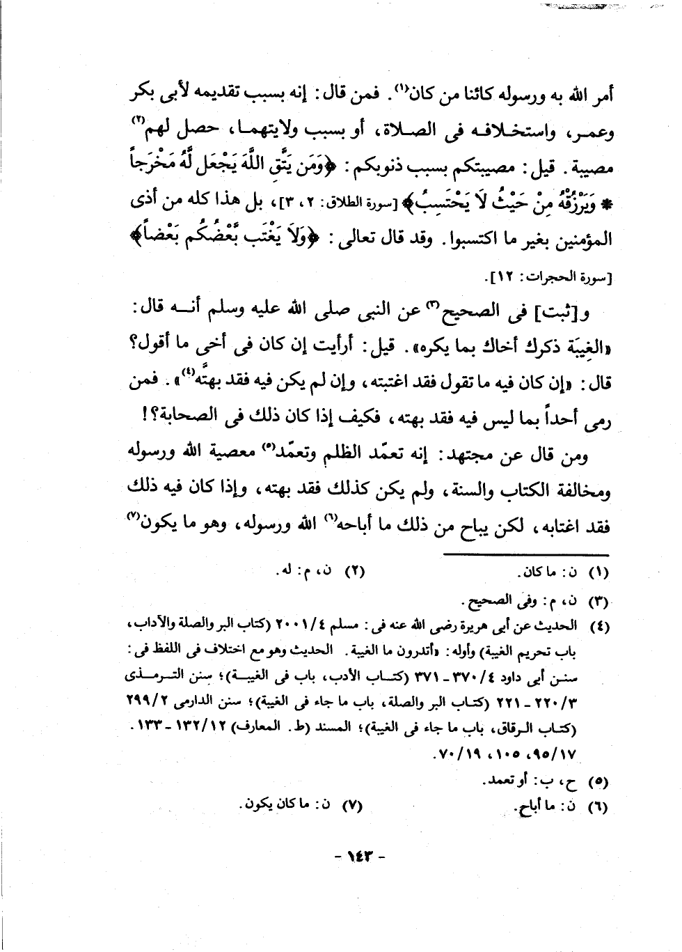 (¬4) الْحَدِيثُ عَنْ أَبِي هُرَيْرَةَ رَضِيَ اللَّهُ عَنْهُ فِي: مُسْلِمٍ 4/2001 كِتَابُ الْبِرِّ وَالصِّلَةِ وَالْآدَابِ، بَابُ تَحْرِيمِ الْغَيْبَةِ، وَأَوَّلُهُ: أَتَدْرُونَ مَا الْغَيْبَةُ، الْحَدِيثَ وَهُوَ مَعَ اخْتِلَافٍ فِي اللَّفْظِ فِي: سُنَنِ أَبِي دَاوُدَ 4/370 - 371 كِتَابُ الْأَدَبِ، بَابٌ فِي الْغَيْبَةِ، سُنَنَ التِّرْمِذِيِّ 3/220 - 221 كِتَابُ الْبَرِّ وَالصِّلَةِ، بَابُ مَا جَاءَ فِي الْغَيْبَةِ، سُنَنَ الدَّارِمِيِّ 2/299 كِتَابُ الرُّقَاقِ، بَابُ مَا جَاءَ فِي الْغَيْبَةِ، الْمُسْنَدَ ط. الْمَعَارِفِ 12/132 - 133. 17/95، 105، 19/70.