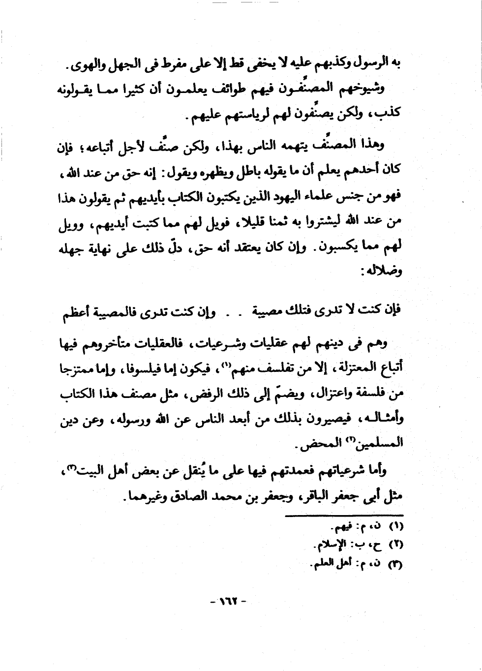 وَهُمْ فِي دِينِهِمْ لَهُمْ عَقْلِيَّاتٌ وَشَرْعِيَّاتٌ، فَالْعَقْلِيَّاتُ مُتَأَخِّرُوهُمْ فِيهَا أَتْبَاعُ الْمُعْتَزِلَةِ، إِلَّا مَنْ تَفَلْسَفَ مِنْهُمْ (¬1) ، فَيَكُونُ إِمَّا فَيْلَسُوفًا، وَإِمَّا مُمْتَزِجًا مِنْ فَلْسَفَةٍ وَاعْتِزَالٍ، وَيُضَمُّ إِلَى ذَلِكَ الرَّفْضُ، مِثْلَ مُصَنِّفِ هَذَا الْكِتَابِ وَأَمْثَالِهِ، فَيَصِيرُونَ بِذَلِكَ مِنْ أَبْعَدِ النَّاسِ عَنِ اللَّهِ وَرَسُولِهِ، وَعَنْ دِينِ الْمُسْلِمِينَ (¬2) الْمَحْضِ.