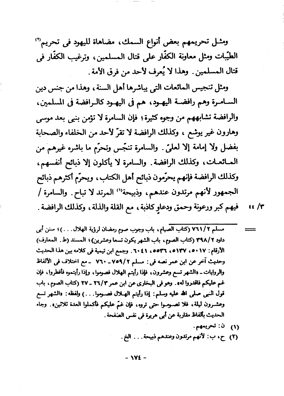 وَمِثْلَ تَحْرِيمِهِمْ بَعْضَ أَنْوَاعِ السَّمَكِ، مُضَاهَاةً لِلْيَهُودِ فِي تَحْرِيمِ (¬1) الطَّيِّبَاتِ وَمِثْلَ مُعَاوَنَةِ الْكُفَّارِ عَلَى قِتَالِ الْمُسْلِمِينَ، وَتَرْغِيبِ الْكُفَّارِ فِي قِتَالِ الْمُسْلِمِينَ. وَهَذَا لَا يُعْرَفُ لِأَحَدٍ مِنْ فِرَقِ الْأُمَّةِ.