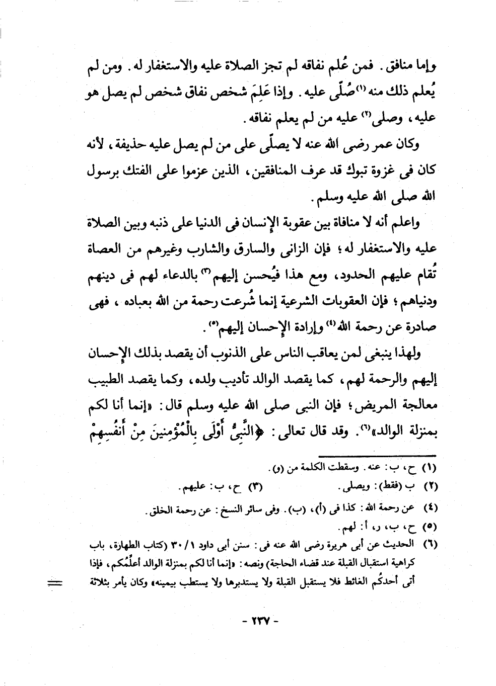 وَاعْلَمْ أَنَّهُ لَا مُنَافَاةَ بَيْنَ عُقُوبَةِ الْإِنْسَانِ فِي الدُّنْيَا عَلَى ذَنْبِهِ وَبَيْنَ الصَّلَاةِ عَلَيْهِ وَالِاسْتِغْفَارِ لَهُ ; فَإِنَّ الزَّانِيَ وَالسَّارِقَ وَالشَّارِبَ وَغَيْرَهُمْ مِنَ الْعُصَاةِ تُقَامُ عَلَيْهِمُ الْحُدُودُ، وَمَعَ هَذَا فَيُحْسَنُ إِلَيْهِمْ (¬3) بِالدُّعَاءِ لَهُمْ فِي دِينِهِمْ وَدُنْيَاهُمْ ; فَإِنَّ الْعُقُوبَاتِ الشَّرْعِيَّةَ إِنَّمَا شُرِعَتْ رَحْمَةً مِنَ اللَّهِ بِعِبَادِهِ، فَهِيَ صَادِرَةٌ عَنْ رَحْمَةِ اللَّهِ (¬4) وَإِرَادَةِ الْإِحْسَانِ إِلَيْهِمْ (¬5) .