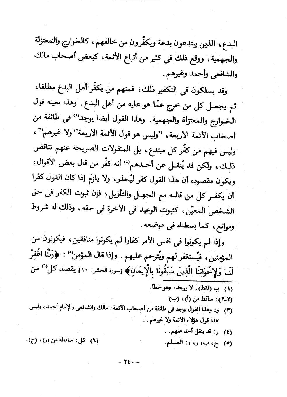 (¬3) و: وَهَذَا الْقَوْلُ يُوجَدُ فِي طَائِفَةٍ مِنْ أَصْحَابِ الْأَئِمَّةِ: مَالِكٍ وَالشَّافِعِيِّ وَالْإِمَامِ أَحْمَدَ وَلَيْسَ هَذَا قَوْلُ هَؤُلَاءِ الْأَئِمَّةِ وَلَا غَيْرِهِمْ.