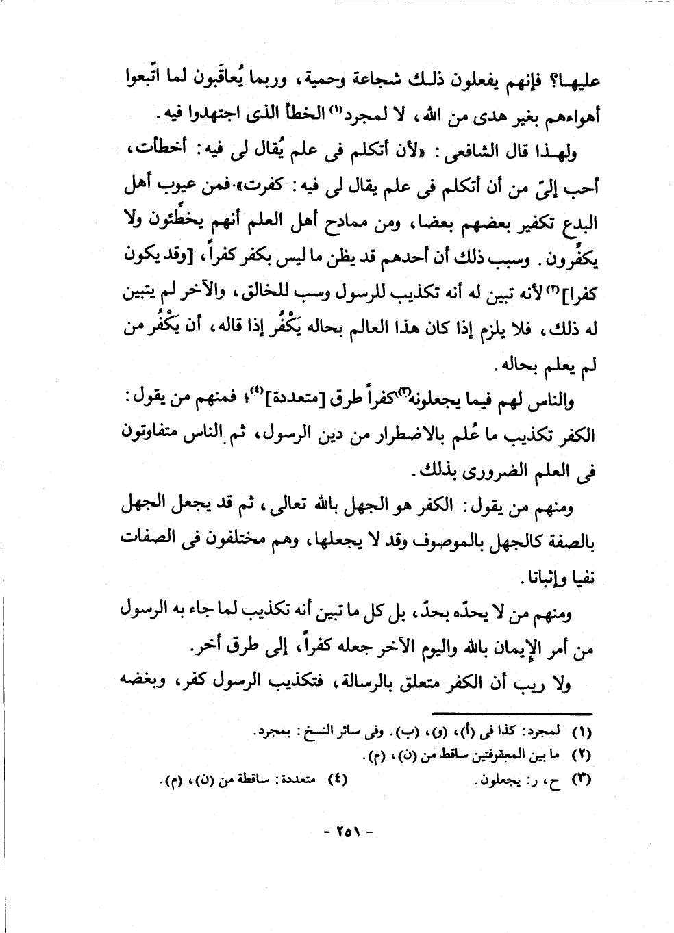 وَمِنْهُمْ مَنْ لَا يَحُدُّهُ بِحَدٍّ، بَلْ كُلُّ مَا تَبَيَّنَ أَنَّهُ تَكْذِيبٌ لِمَا جَاءَ بِهِ الرَّسُولُ مِنْ أَمْرِ الْإِيمَانِ بِاللَّهِ وَالْيَوْمِ الْآخِرِ جَعَلَهُ كُفْرًا، إِلَى طُرُقٍ أُخَرَ.