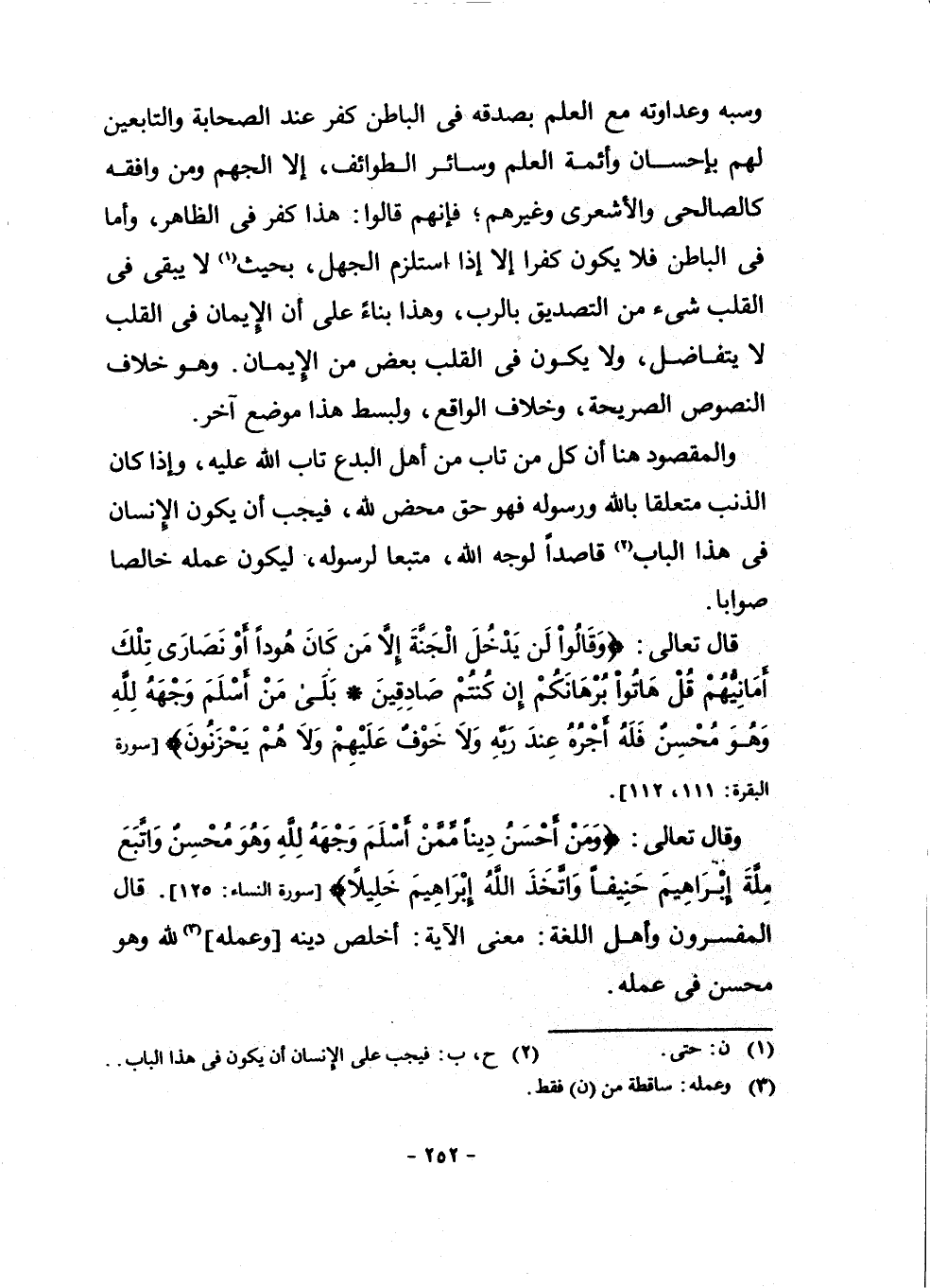 قَالَ تَعَالَى: {وَقَالُوا لَنْ يَدْخُلَ الْجَنَّةَ إِلَّا مَنْ كَانَ هُودًا أَوْ نَصَارَى تِلْكَ أَمَانِيُّهُمْ قُلْ هَاتُوا بُرْهَانَكُمْ إِنْ كُنْتُمْ صَادِقِينَ - بَلَى مَنْ أَسْلَمَ وَجْهَهُ لِلَّهِ وَهُوَ مُحْسِنٌ فَلَهُ أَجْرُهُ عِنْدَ رَبِّهِ وَلَا خَوْفٌ عَلَيْهِمْ وَلَا هُمْ يَحْزَنُونَ} [سُورَةُ الْبَقَرَةِ: 111 - 112] .