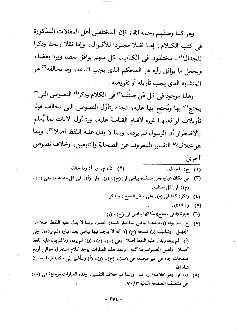 (¬7) ح: لَمْ يُرِدْهُ وَبَعْدَهَا بَيَاضٌ بِمِقْدَارِ كَلِمَةِ الْعِلْمِ، وَبِمَا لَا يَدُلُّ عَلَيْهِ اللَّفْظُ أَصْلًا مِنَ الْجَهْلِ وَشَابَهَتْ (ر) ، نُسْخَةَ (ح) إِلَّا أَنَّهُ لَا يُوجَدُ فِيهَا بَيَاضٌ بَعْدَ عِبَارَةِ (لَمْ يُرِدْهُ وَفِي (أ) : لَمْ يُرِدْهُ وَيَدُلُّ عَلَيْهِ اللَّفْظُ أَصْلًا وَفِي (ن) ، (م) ، (و) لَمْ يُرِدْهُ، وَمَا لَمْ يَدُلَّ عَلَيْهِ اللَّفْظُ أَصْلًا، وَلَعَلَّ الصَّوَابَ مَا أَثْبَتُّهُ، وَبَعْدَ هَذِهِ الْعِبَارَاتِ يُوجَدُ كَلَامٌ اسْتَغْرَقَ حَوَالَيْ أَرْبَعَ صَفَحَاتٍ جَاءَ فِي غَيْرِ مَوْضِعِهِ فِي (ب) ، (ح) ، (ر) ، (أ) وَسَأُشِيرُ إِلَى مَكَانِهِ فِيمَا بَعْدُ إِنْ شَاءَ اللَّهُ.
