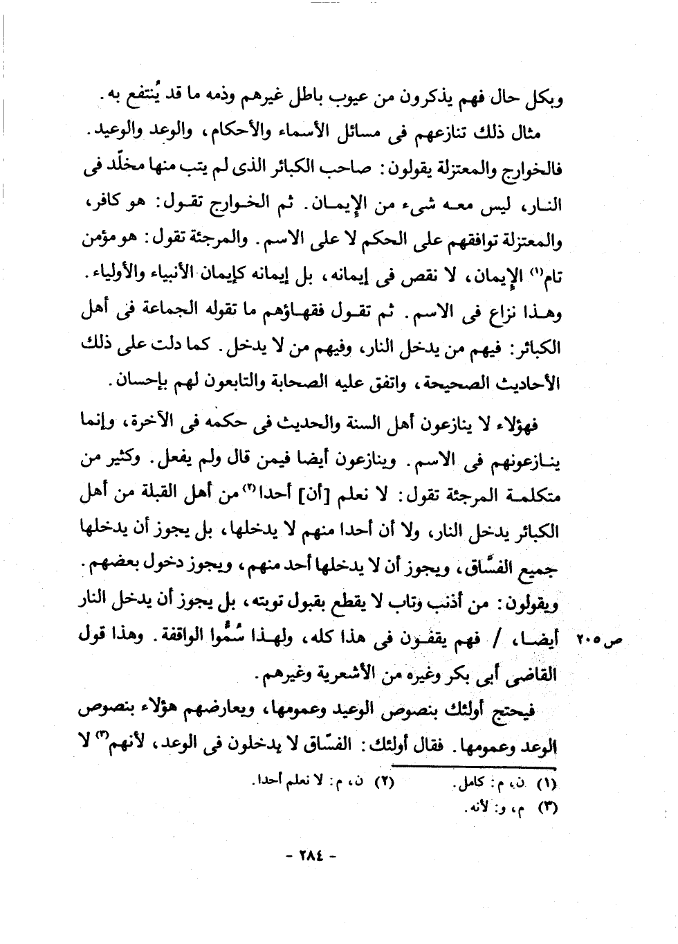 فَهَؤُلَاءِ لَا يُنَازِعُونَ أَهْلَ السُّنَّةِ وَالْحَدِيثِ فِي حُكْمِهِ فِي الْآخِرَةِ، وَإِنَّمَا يُنَازِعُونَهُمْ فِي الِاسْمِ. وَيُنَازِعُونَ أَيْضًا فِيمَنْ قَالَ وَلَمْ يَفْعَلْ. وَكَثِيرٌ مِنْ مُتَكَلِّمَةِ الْمُرْجِئَةِ تَقُولُ: لَا نَعْلَمُ أَنَّ أَحَدًا (¬2) مِنْ أَهْلِ الْقِبْلَةِ مِنْ أَهْلِ الْكَبَائِرِ يَدْخُلُ النَّارَ، وَلَا أَنَّ أَحَدًا مِنْهُمْ لَا يَدْخُلُهَا، بَلْ يَجُوزُ أَنْ يَدْخُلَهَا جَمِيعُ الْفُسَّاقِ، وَيَجُوزُ أَنْ لَا يَدْخُلَهَا أَحَدٌ مِنْهُمْ، وَيَجُوزُ دُخُولُ بَعْضِهِمْ. وَيَقُولُونَ: مَنْ أَذْنَبَ وَتَابَ لَا يُقْطَعُ بِقَبُولِ تَوْبَتِهِ، بَلْ يَجُوزُ أَنْ يَدْخُلَ النَّارَ أَيْضًا، فَهُمْ يَقِفُونَ فِي هَذَا كُلِّهِ، وَلِهَذَا سُمُّوا الْوَاقِفَةُ. وَهَذَا قَوْلُ الْقَاضِي أَبِي بَكْرٍ وَغَيْرِهِ مِنَ الْأَشْعَرِيَّةِ وَغَيْرِهِمْ.