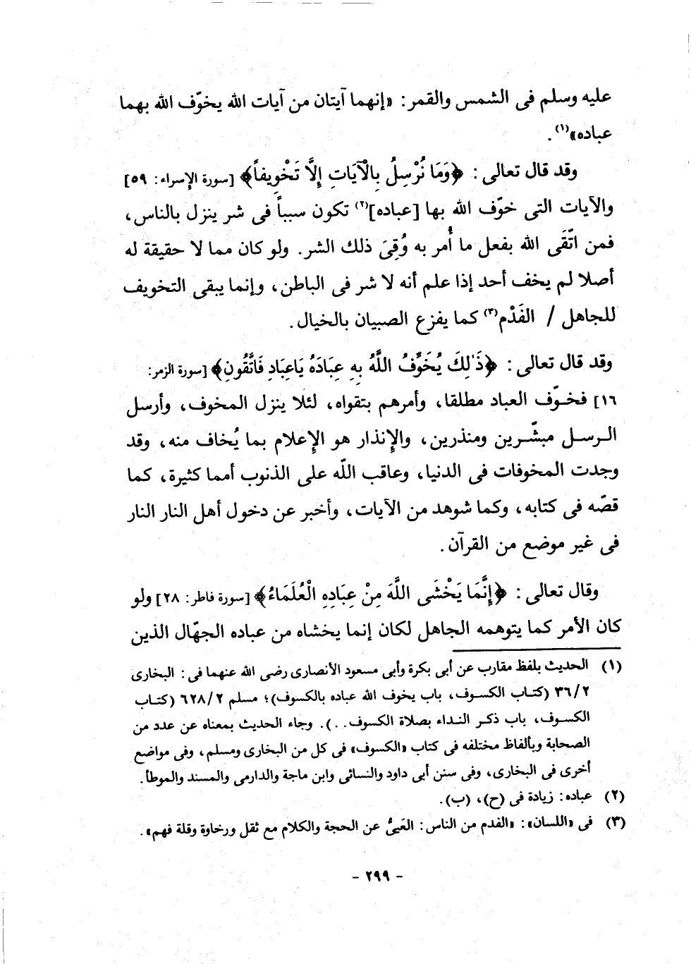 وَقَالَ - تَعَالَى -: {إِنَّمَا يَخْشَى اللَّهَ مِنْ عِبَادِهِ الْعُلَمَاءُ} [سُورَةُ فَاطِرٍ: 28] وَلَوْ كَانَ الْأَمْرُ كَمَا يَتَوَهَّمُهُ الْجَاهِلُ لَكَانَ إِنَّمَا يَخْشَاهُ مِنْ عِبَادِهِ الْجُهَّالُ الَّذِينَ