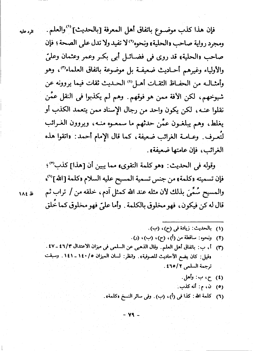 (¬3) أ، ب: بِاتِّفَاقِ أَهْلِ الْعِلْمِ وَقَالَ الذَّهَبِيُّ عَنِ السُّلَمِيِّ فِي مِيزَانِ الِاعْتِدَالِ 3/46 - 47. قِيلَ: كَانَ يَضَعُ الْأَحَادِيثَ لِلصُّوفِيَّةِ، وَانْظُرْ لِسَانَ الْمِيزَانِ 5/140 - 141 وَسَبَقَتْ تَرْجَمَةُ السُّلَمِيِّ 2/465.