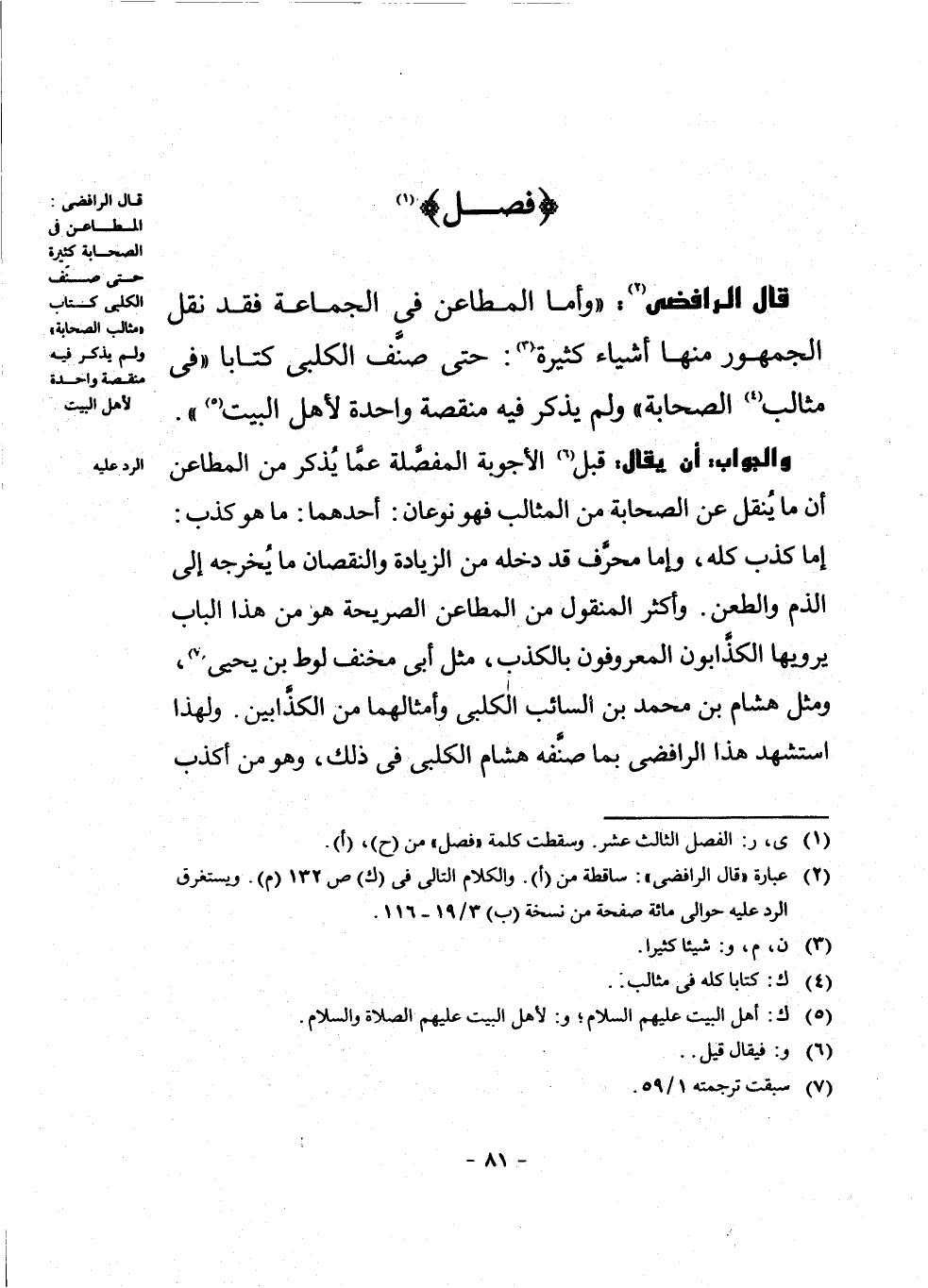 (¬2) عِبَارَةُ " قَالَ الرَّافِضِي " سَاقِطَةٌ مِنْ (أ) ، وَالْكَلَامُ التَّالِي فِي (ك) ، ص 132 (م) ، وَيَسْتَغْرِقُ الرَّدُّ عَلَيْهِ حَوَالَيْ مِائَةِ صَفْحَةٍ مِنْ نُسْخَةِ (ب) 3/19 - 116