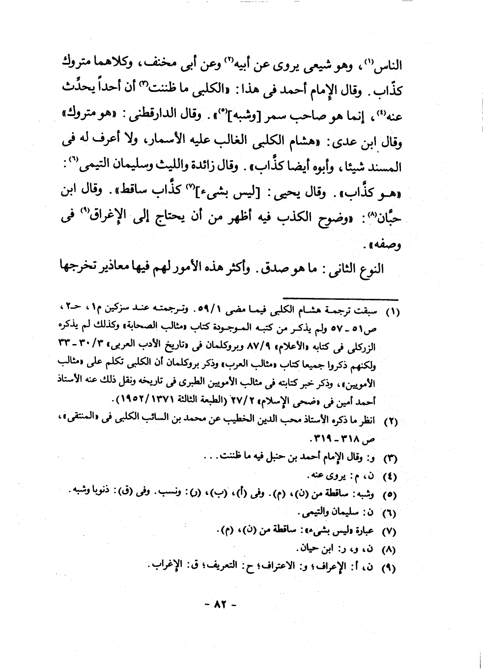 (¬2) انْظُرْ مَا ذَكَرَهُ الْأُسْتَاذُ مُحِبُّ الدِّينِ الْخَطِيبُ عَنْ مُحَمَّدِ بْنِ السَّائِبِ الْكَلْبِيِّ فِي الْمُنْتَقَى ص 318 - 319