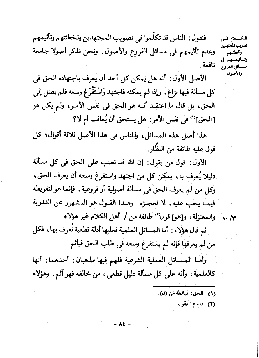 فَنَقُولُ: النَّاسُ قَدْ تَكَلَّمُوا فِي تَصْوِيبِ الْمُجْتَهِدِينَ وَتَخْطِئَتِهِمْ وَتَأْثِيمِهِمْ وَعَدَمِ تَأْثِيمِهِمْ فِي مَسَائِلِ الْفُرُوعِ وَالْأُصُولِ. وَنَحْنُ نَذْكُرُ أُصُولًا جَامِعَةً نَافِعَةً.