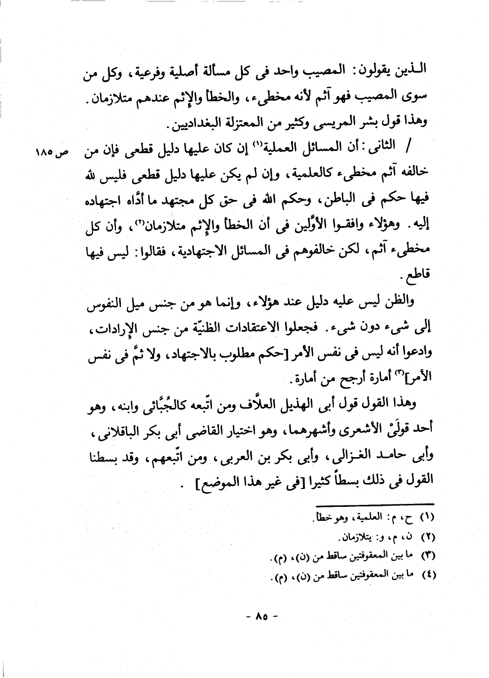 الَّذِينَ يَقُولُونَ: الْمُصِيبُ وَاحِدٌ فِي كُلِّ مَسْأَلَةٍ أَصْلِيَّةٍ وَفَرْعِيَّةٍ، وَكُلُّ مَنْ سِوَى الْمُصِيبِ فَهُوَ آثِمٌ لِأَنَّهُ مُخْطِئٌ، وَالْخَطَأُ وَالْإِثْمُ عِنْدَهُمْ مُتَلَازِمَانِ. وَهَذَا قَوْلُ بِشْرٍ الْمَرِيسِيِّ وَكَثِيرٍ مِنَ الْمُعْتَزِلَةِ الْبَغْدَادِيِّينَ.