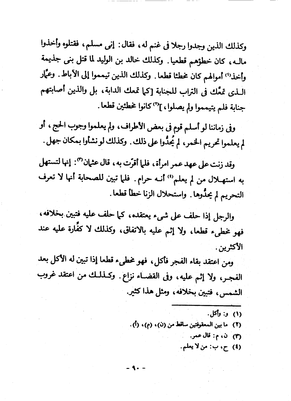 وَكَذَلِكَ الَّذِينَ وَجَدُوا رَجُلًا فِي غَنَمٍ لَهُ، فَقَالَ: إِنِّي مُسْلِمٌ، فَقَتَلُوهُ وَأَخَذُوا مَالَهُ، كَانَ خَطَؤُهُمْ قَطْعِيًّا. وَكَذَلِكَ خَالِدُ بْنُ الْوَلِيدِ لَمَّا قَتَلَ بَنِي جُذَيْمَةَ وَأَخَذَ (¬1) أَمْوَالَهُمْ كَانَ مُخْطِئًا قَطْعًا. وَكَذَلِكَ الَّذِينَ تَيَمَّمُوا إِلَى الْآبَاطِ. وَعَمَّارُ الَّذِي تَمَعَّكَ فِي التُّرَابِ لِلْجَنَابَةِ [كَمَا تَمَعَّكُ الدَّابَّةُ، بَلْ وَالَّذِينَ أَصَابَتْهُمْ جَنَابَةٌ فَلَمْ يَتَيَمَّمُوا وَلَمْ يُصَلُّوا] (¬2) كَانُوا مُخْطِئِينَ قَطْعًا.