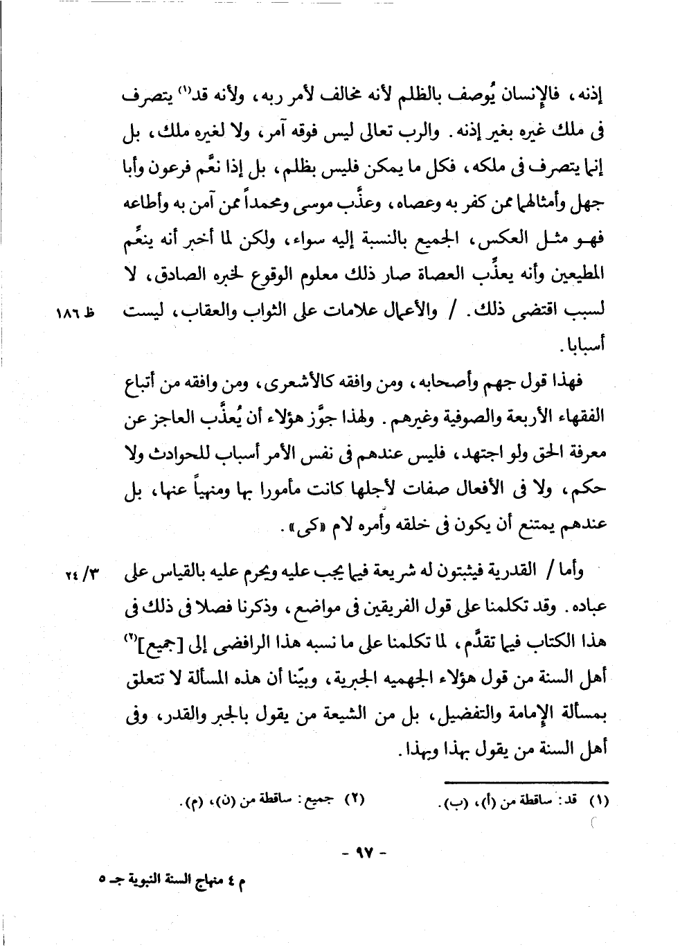 كتاب منهاج السنة النبوية (اسم الجزء: 5)