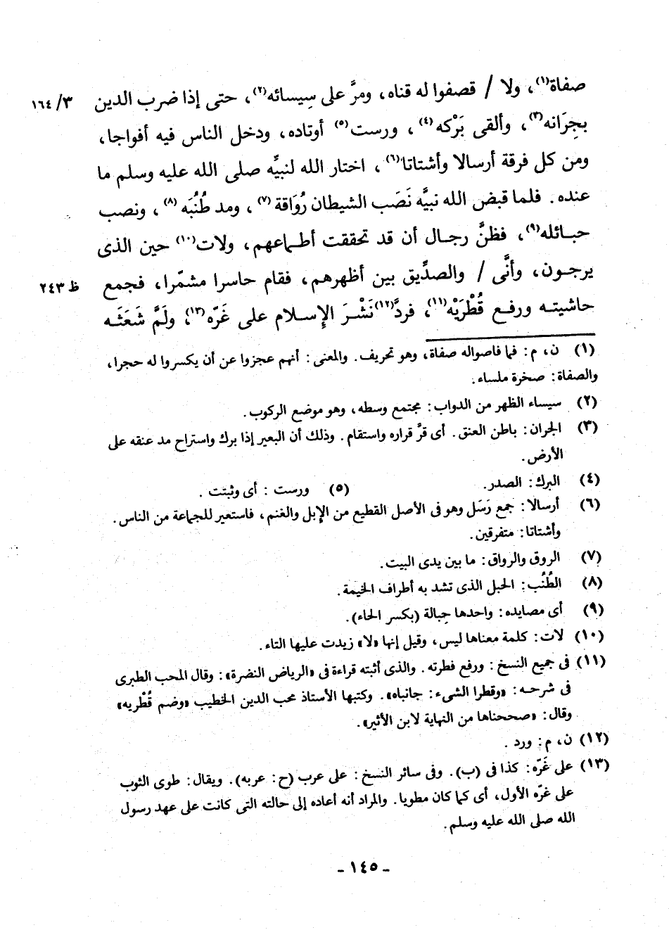 (¬11) فِي جَمِيعِ النُّسَخِ: وَرَفَعَ فِطْرَتَهُ، وَالَّذِي أَثْبَتُّهُ قِرَاءَةٌ فِي الرِّيَاضِ النَّضِرَةِ، وَقَالَ الْمُحِبُّ الطَّبَرِيُّ فِي شَرْحِهِ: وَقُطْرَا الشَّيْءِ: جَانِبَاهُ، وَكَتَبَهَا الْأُسْتَاذُ مُحِبُّ الدِّينِ الْخَطِيب " وَضَمَّ قُطْرَيْهِ " وَقَالَ: صَحَّحْنَاهَا مِنَ النِّهَايَةِ لِابْنِ الْأَثِيرِ.