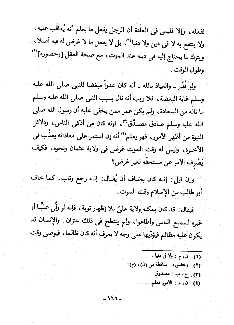وَلَوْ قُدِّرَ - وَالْعِيَاذُ بِاللَّهِ - أَنَّهُ كَانَ عَدُوًّا مُبْغِضًا لِلنَّبِيِّ - صَلَّى اللَّهُ عَلَيْهِ وَسَلَّمَ - غَايَةَ الْبِغْضَةِ، فَلَا رَيْبَ أَنَّهُ نَالَ بِسَبَبِ النَّبِيِّ - صَلَّى اللَّهُ عَلَيْهِ وَسَلَّمَ - مَا نَالَهُ مِنَ السَّعَادَةِ، وَلَمْ يَكُنْ عُمَرُ مِمَّنْ يَخْفَى عَلَيْهِ أَنَّ رَسُولَ اللَّهِ - صَلَّى اللَّهُ عَلَيْهِ وَسَلَّمَ - صَادِقٌ مُصَدَّقٌ (¬3) ، فَإِنَّهُ كَانَ مِنْ أَذْكَى النَّاسِ، وَدَلَائِلُ النُّبُوَّةِ مِنْ أَظْهَرِ الْأُمُورِ، فَهُوَ يَعْلَمُ (¬4) أَنَّهُ إِنِ اسْتَمَرَّ عَلَى مُعَادَاتِهِ يُعَذَّبُ فِي الْآخِرَةِ، وَلَيْسَ لَهُ وَقْتَ الْمَوْتِ غَرَضٌ فِي وِلَايَةِ عُثْمَانَ وَنَحْوِهِ، فَكَيْفَ يَصْرِفُ الْأَمْرَ عَنْ مُسْتَحِقِّهِ لِغَيْرِ غَرَضٍ؟