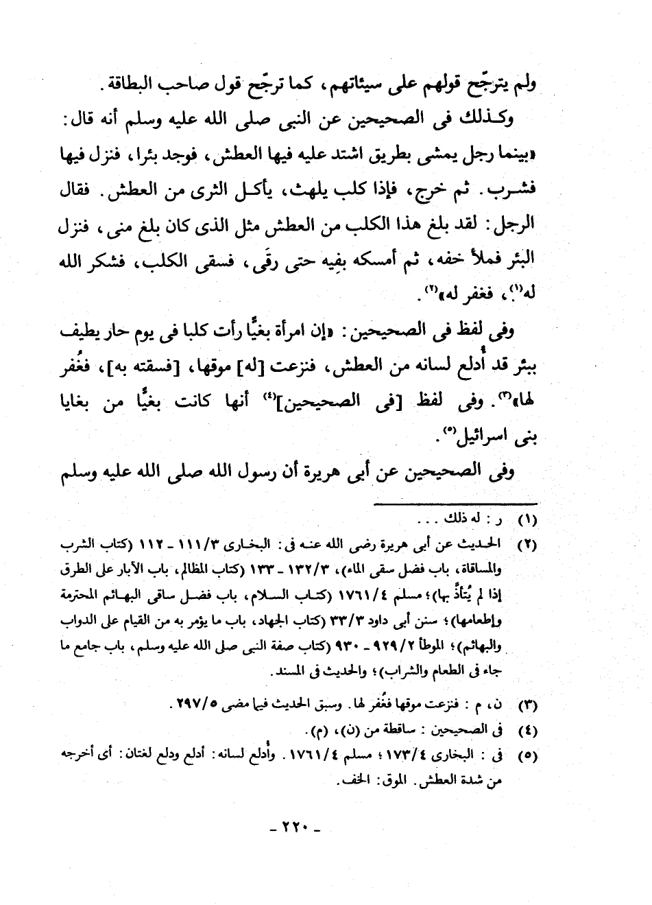 (¬2) الْحَدِيثُ عَنْ أَبِي هُرَيْرَةَ رَضِيَ اللَّهُ عَنْهُ فِي الْبُخَارِيِّ 3/111 - 112 (كِتَابُ الشُّرْبِ وَالْمُسَاقَاةِ، بَابُ فَضْلِ سَقْيِ الْمَاءِ) 3/132 - 133 (كِتَابُ الْمَظَالِمِ، بَابُ الْآبَارِ عَلَى الطُّرُقِ إِذَا لَمْ يُتَأَذَّ بِهَا) ؛ مُسْلِمٍ 4/1761 (كِتَابُ السَّلَامِ، بَابُ فَضْلِ سَاقِي الْبَهَائِمِ الْمُحْتَرَمَةِ وَإِطْعَامِهَا) ؛ سُنَنِ أَبِي دَاوُدَ 3/33 (كِتَابُ الْجِهَادِ، بَابُ مَا يُؤْمَرُ بِهِ مِنَ الْقِيَامِ عَلَى الدَّوَابِّ وَالْبَهَائِمِ) ؛ الْمُوَطَّأِ 2/929 - 930 (كِتَابُ صِفَةِ النَّبِيِّ صَلَّى اللَّهُ عَلَيْهِ وَسَلَّمَ، بَابُ جَامِعِ مَا جَاءَ فِي الطَّعَامِ وَالشَّرَابِ) . وَالْحَدِيثُ فِي الْمُسْنَدِ.