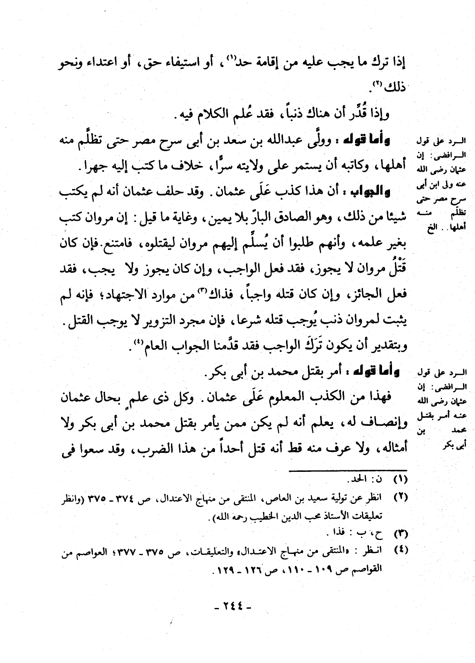 (¬4) انْظُرْ: الْمُنْتَقَى مِنْ مِنْهَاجِ الِاعْتِدَالِ وَالتَّعْلِيقَاتِ ص 375 - 377 الْعَوَاصِمَ مِنَ الْقَوَاصِمِ ص 109 - 110 ص 126 - 129