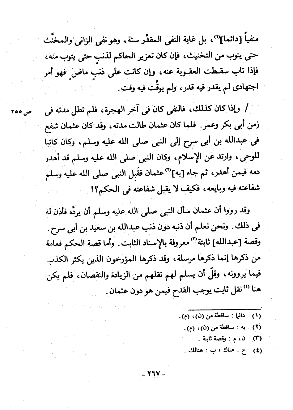وَإِذَا كَانَ كَذَلِكَ، فَالنَّفْيُ كَانَ فِي آخِرِ الْهِجْرَةِ، فَلَمْ تَطُلْ مُدَّتُهُ فِي زَمَنِ أَبِي بَكْرٍ وَعُمَرَ. فَلَمَّا كَانَ عُثْمَانُ طَالَتْ مُدَّتُهُ، وَقَدْ كَانَ عُثْمَانُ شَفَعَ فِي عَبْدِ اللَّهِ بْنِ أَبِي سَرْحٍ إِلَى النَّبِيِّ - صَلَّى اللَّهُ عَلَيْهِ وَسَلَّمَ -، وَكَانَ كَاتِبًا لِلْوَحْيِ، وَارْتَدَّ عَنِ الْإِسْلَامِ، وَكَانَ النَّبِيُّ - صَلَّى اللَّهُ عَلَيْهِ وَسَلَّمَ - قَدْ أَهْدَرَ دَمَهُ فِيمَنْ أَهْدَرَ، ثُمَّ جَاءَ [بِهِ] (¬2) عُثْمَانُ فَقَبِلَ النَّبِيُّ - صَلَّى اللَّهُ عَلَيْهِ وَسَلَّمَ - شَفَاعَتَهُ فِيهِ وَبَايَعَهُ، فَكَيْفَ لَا يَقْبَلُ شَفَاعَتَهُ فِي الْحَكَمِ؟ !
