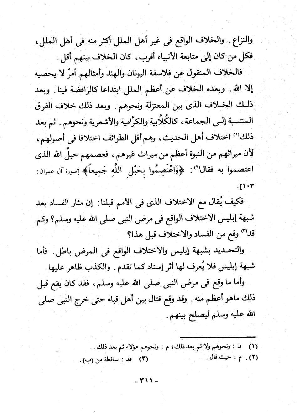 فَكَيْفَ يُقَالُ مَعَ الِاخْتِلَافِ الَّذِي فِي الْأُمَمِ قَبْلَنَا: إِنَّ مَثَارَ الْفَسَادِ بَعْدَ شُبْهَةِ إِبْلِيسَ الِاخْتِلَافُ الْوَاقِعُ فِي مَرَضِ النَّبِيِّ - صَلَّى اللَّهُ عَلَيْهِ وَسَلَّمَ -؟ وَكَمْ قَدْ (¬3) وَقَعَ مِنَ الْفَسَادِ وَالِاخْتِلَافِ قَبْلَ هَذَا؟ .