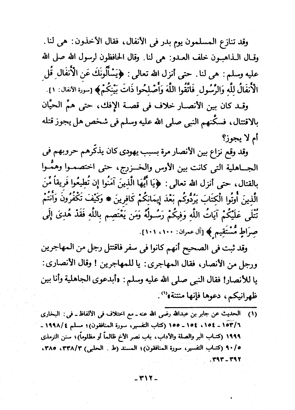 (¬1) الْحَدِيثُ عَنْ جَابِرِ بْنِ عَبْدِ اللَّهِ - رَضِيَ اللَّهُ عَنْهُ - مَعَ اخْتِلَافٍ فِي الْأَلْفَاظِ فِي الْبُخَارِيِّ 6/153 - 154، 154 - 155 (كِتَابِ التَّفْسِيرِ، سُورَةِ الْمُنَافِقُونَ) ، (مُسْلِمٍ 4/1998 - 1999 (كِتَابِ الْبِرِّ وَالصِّلَةِ وَالْآدَابِ، بَابِ نَصْرِ الْأَخِ ظَالِمًا أَوْ مَظْلُومًا) . سُنَنِ التِّرْمِذِيِّ 5/90 (كِتَابِ التَّفْسِيرِ، سُورَةِ الْمُنَافِقُونَ) ، الْمُسْنَدِ (ط. الْحَلَبِيِّ) 3/338 - 385، 392 - 393