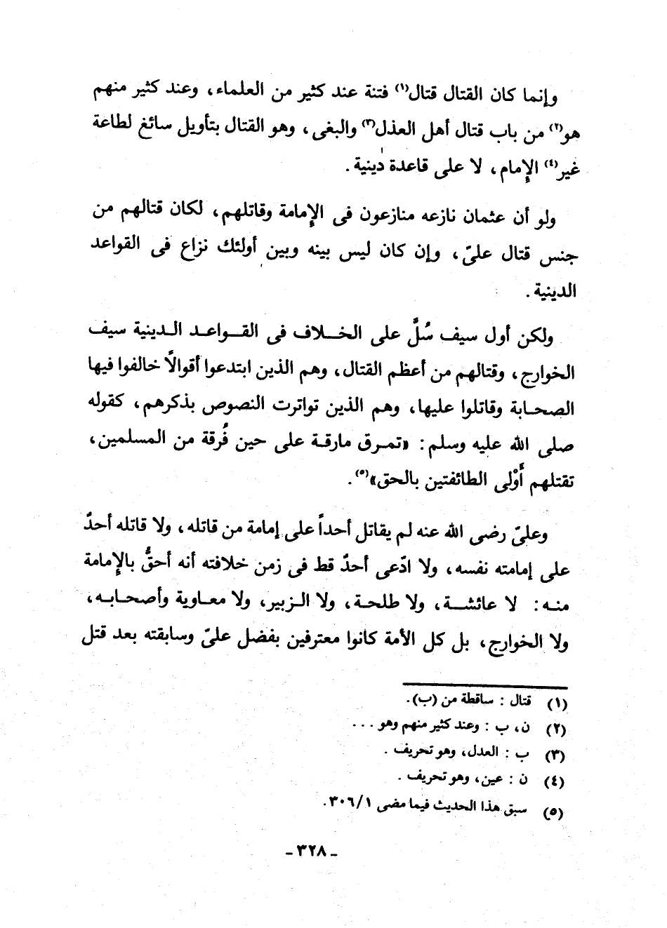 وَإِنَّمَا كَانَ الْقِتَالُ قِتَالُ (¬1) فِتْنَةٍ عِنْدَ كَثِيرٍ مِنَ الْعُلَمَاءِ، وَعِنْدَ كَثِيرٍ مِنْهُمْ هُوَ (¬2) مِنْ بَابِ قِتَالِ أَهْلِ الْعَذْلِ (¬3) وَالْبَغْيِ، وَهُوَ الْقِتَالُ بِتَأْوِيلٍ سَائِغٍ لِطَاعَةِ غَيْرِ (¬4) الْإِمَامِ لَا عَلَى قَاعِدَةٍ دِينِيَّةٍ.