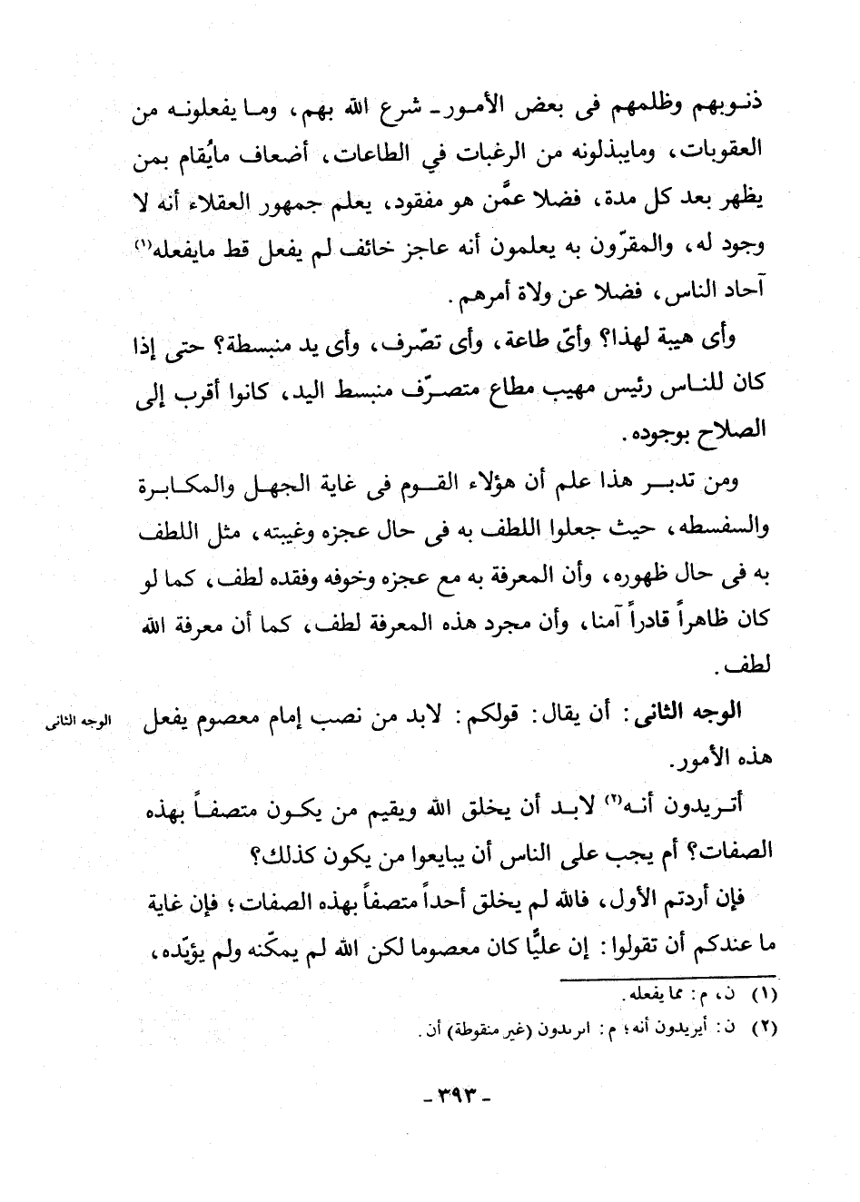 الْوَجْهُ الثَّانِي: أَنْ يُقَالَ: قَوْلُكُمْ: لَا بُدَّ مِنْ نَصْبِ إِمَامٍ مَعْصُومٍ يَفْعَلُ هَذِهِ الْأُمُورَ.