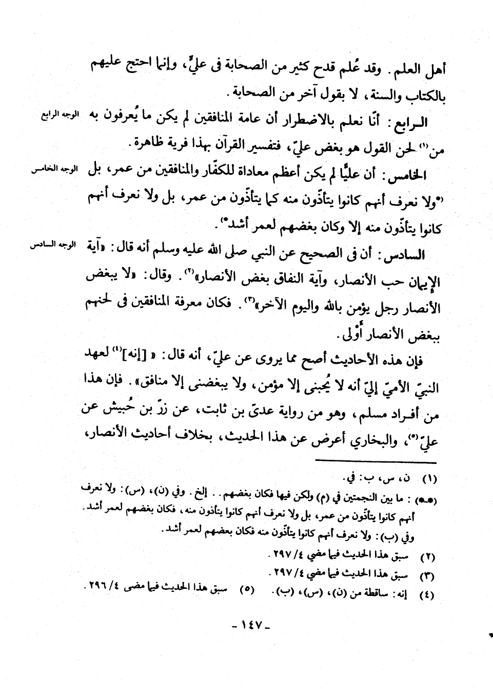 (¬2) مَا بَيْنَ النَّجْمَتَيْنِ فِي (م) ، وَلَكِنْ فِيهَا فَكَانَ بُغْضُهُمْ إِلَخْ، وَفِي (ن) ، (س) وَلَا نَعْرِفُ أَنَّهُمْ كَانُوا يَتَأَذَّوْنَ مِنْ عُمَرَ، بَلْ وَلَا نَعْرِفُ أَنَّهُمْ كَانُوا يَتَأَذَّوْنَ مِنْهُ، فَكَانَ بُغْضُهُمْ لِعُمَرَ أَشَدَّ، وَفِي (ب) وَلَا نَعْرِفُ أَنَّهُمْ كَانُوا يَتَأَذَّوْنَ مِنْهُ فَكَانَ بُغْضُهُمْ لِعُمَرَ أَشَدَّ.