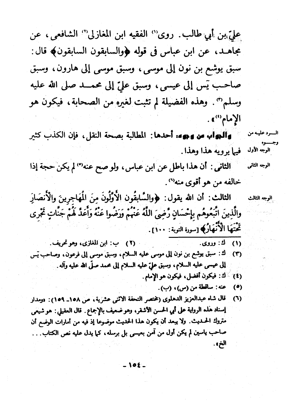 وَالْجَوَابُ مِنْ وُجُوهٍ: أَحَدُهَا: الْمُطَالَبَةُ بِصِحَّةِ النَّقْلِ، فَإِنَّ الْكَذِبَ كَثِيرٌ فِيمَا يَرْوِيهِ هَذَا وَهَذَا.