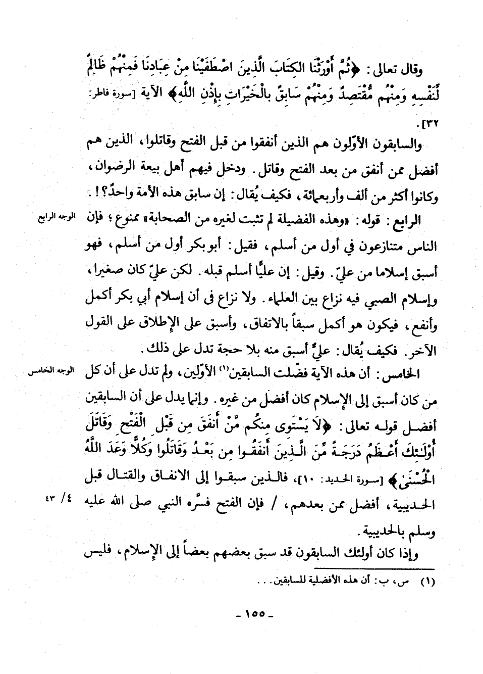 (¬1) س، ب: أَنَّ هَذِهِ الْأَفْضَلِيَّةَ لِلسَّابِقِينَ.
