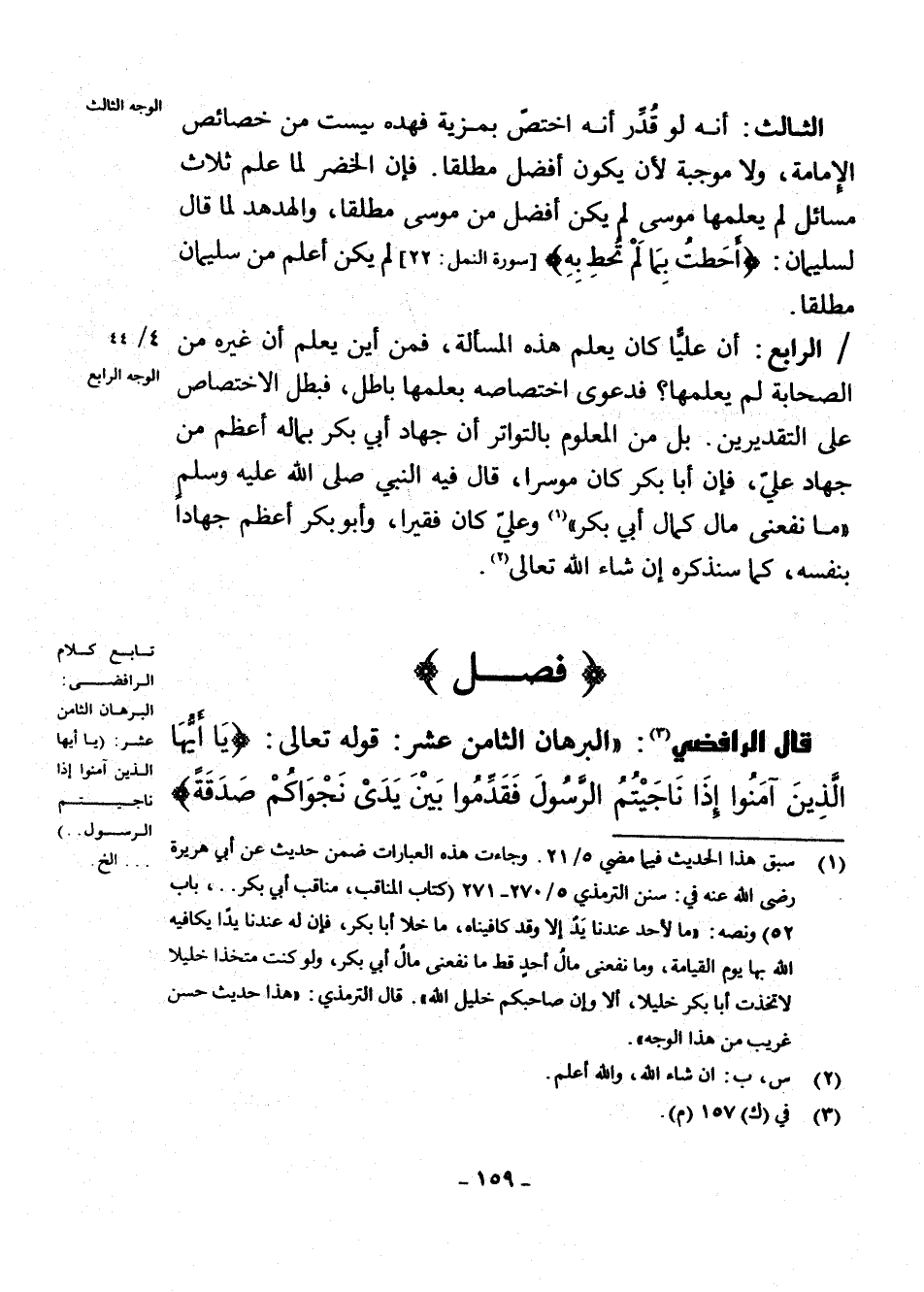 [فصل البرهان الثامن عشر " يَا أَيُّهَا الَّذِينَ آمَنُوا إِذَا نَاجَيْتُمُ الرَّسُولَ فَقَدِّمُوا بَيْنَ يَدَيْ نَجْوَاكُمْ صَدَقَةً " والجواب عليه]