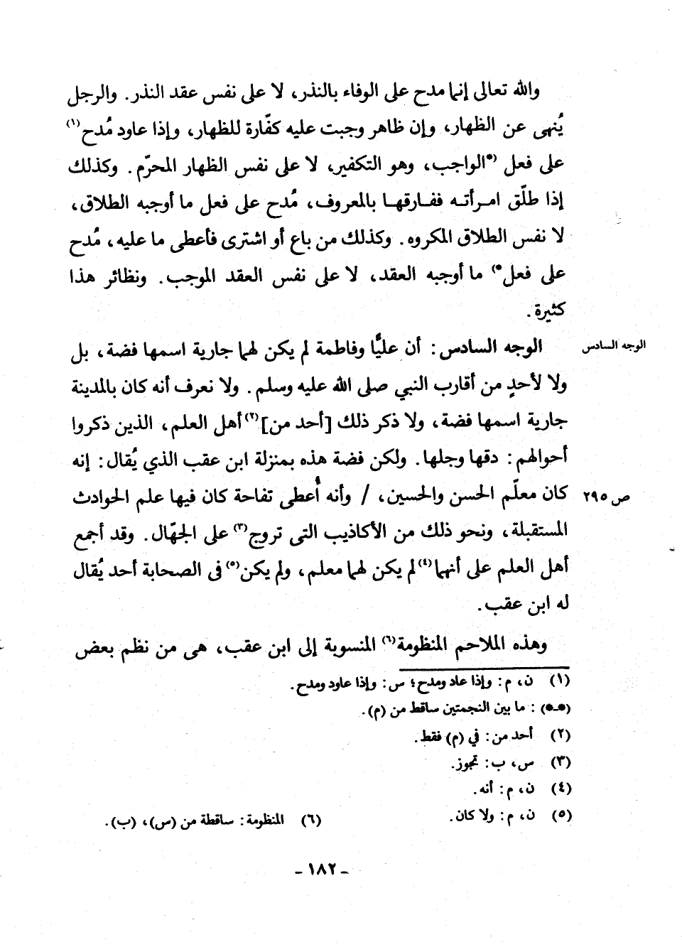 الْوَجْهُ السَّادِسُ: أَنَّ عَلِيًّا وَفَاطِمَةَ لَمْ يَكُنْ لَهُمَا جَارِيَةٌ اسْمُهَا فِضَّةٌ، بَلْ وَلَا لِأَحَدٍ مِنْ أَقَارِبِ النَّبِيِّ - صَلَّى اللَّهُ عَلَيْهِ وَسَلَّمَ -. وَلَا نَعْرِفُ أَنَّهُ كَانَ بِالْمَدِينَةِ جَارِيَةٌ اسْمُهَا فِضَّةٌ، وَلَا ذَكَرَ ذَلِكَ [أَحَدٌ مِنْ] (¬3) أَهْلِ الْعِلْمِ، الَّذِينَ ذَكَرُوا أَحْوَالَهُمْ: دَقَّهَا وَجُلَّهَا. وَلَكِنْ فِضَّةٌ هَذِهِ بِمَنْزِلَةِ ابْنِ عَقِبِ الَّذِي يُقَالُ: إِنَّهُ كَانَ مُعَلِّمَ الْحَسَنِ وَالْحُسَيْنِ، وَأَنَّهُ أُعْطِيَ تُفَّاحَةً كَانَ فِيهَا عِلْمُ الْحَوَادِثِ الْمُسْتَقْبَلَةِ، وَنَحْوُ ذَلِكَ مِنَ الْأَكَاذِيبِ الَّتِي تَرُوجُ (¬4) عَلَى الْجُهَّالِ. وَقَدْ أَجْمَعَ أَهْلُ الْعِلْمِ عَلَى أَنَّهُمَا (¬5) لَمْ يَكُنْ لَهُمَا مُعَلِّمٌ، وَلَمْ يَكُنْ (¬6) فِي الصَّحَابَةِ أَحَدٌ يُقَالُ لَهُ: ابْنُ عَقِبٍ.