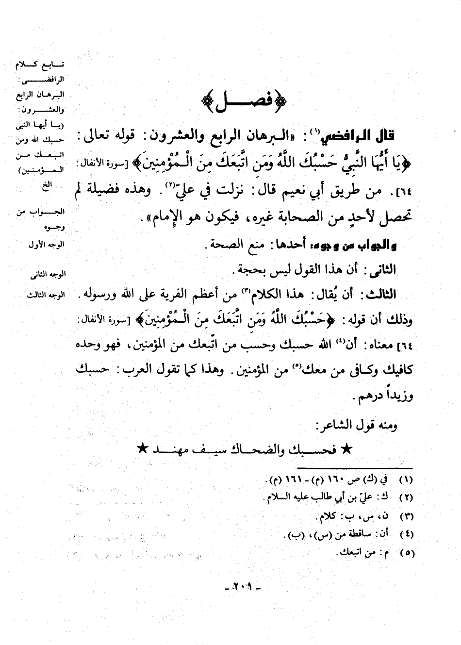 [فصل البرهان الرابع والعشرون " يَا أَيُّهَا النَّبِيُّ حَسْبُكَ اللَّهُ وَمَنِ اتَّبَعَكَ مِنَ الْمُؤْمِنِينَ " والجواب عليه]