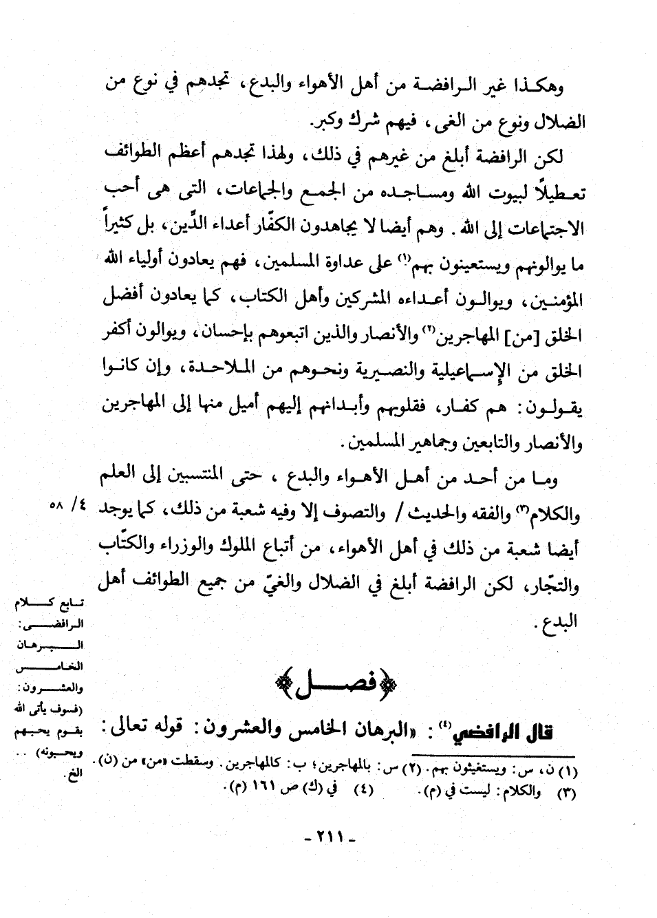 وَمَا مِنْ أَحَدٍ مِنْ أَهْلِ الْأَهْوَاءِ وَالْبِدَعِ، حَتَّى الْمُنْتَسِبِينَ إِلَى الْعِلْمِ وَالْكَلَامِ (¬3) وَالْفِقْهِ وَالْحَدِيثِ وَالتَّصَوُّفِ إِلَّا وَفِيهِ شُعْبَةٌ مِنْ ذَلِكَ، كَمَا يُوجَدُ أَيْضًا شُعْبَةٌ مِنْ ذَلِكَ فِي أَهْلِ الْأَهْوَاءِ مِنْ أَتْبَاعِ الْمُلُوكِ وَالْوُزَرَاءِ وَالْكُتَّابِ وَالتُّجَّارِ، لَكِنَّ الرَّافِضَةَ أَبْلَغُ فِي الضَّلَالِ وَالْغَيِّ مِنْ جَمِيعِ الطَّوَائِفِ أَهْلِ الْبِدَعِ.