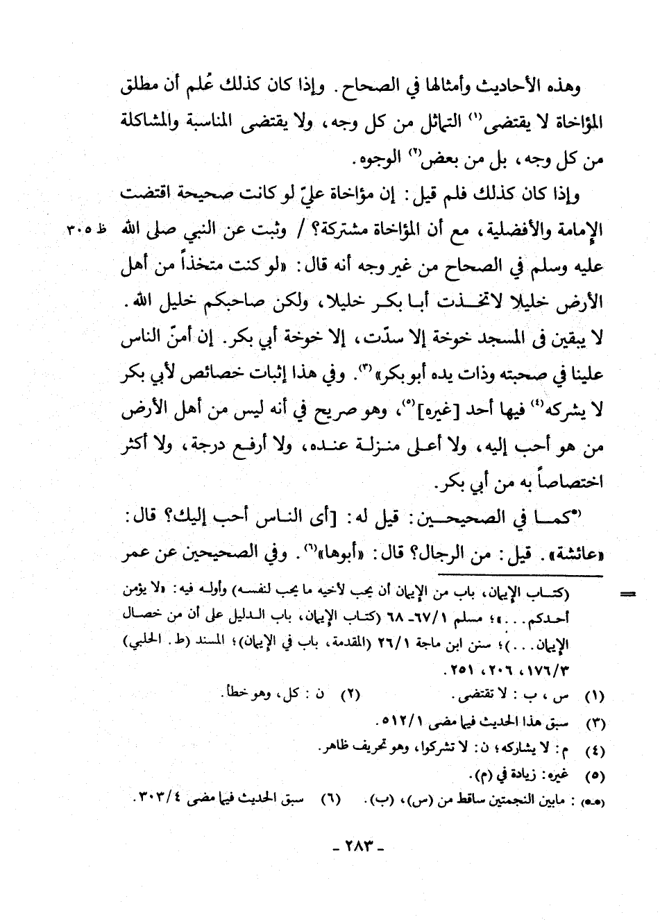 وَهَذِهِ الْأَحَادِيثُ وَأَمْثَالُهَا فِي الصِّحَاحِ. وَإِذَا كَانَ كَذَلِكَ عُلِمَ أَنَّ مُطْلَقَ الْمُؤَاخَاةِ لَا يَقْتَضِي (¬1) التَّمَاثُلَ مِنْ كُلِّ وَجْهٍ، وَلَا يَقْتَضِي الْمُنَاسَبَةَ وَالْمُشَاكَلَةَ مِنْ كُلِّ وَجْهٍ، بَلْ مِنْ بَعْضٍ (¬2) الْوُجُوهِ.