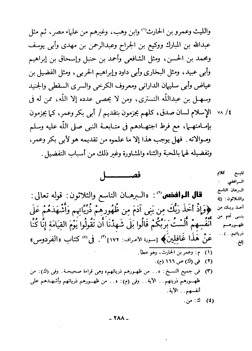 (¬3) فِي جَمِيعِ النُّسَخِ (. . . مِنْ ظُهُورِهِمْ ذُرِّيَّاتِهِمْ) ، وَهِيَ قِرَاءَةٌ صَحِيحَةٌ، وَفِي (ك) مِنْ ظُهُورِهِمْ ذُرِّيَّتَهُمْ. . .، الْآيَةَ. .، وَفِي (م) : ". . مِنْ ظُهُورِهِمْ ذُرِّيَّتَهُمْ وَأَشْهَدَهُمْ عَلَى أَنْفُسِهِمْ. . . الْآيَةَ. .